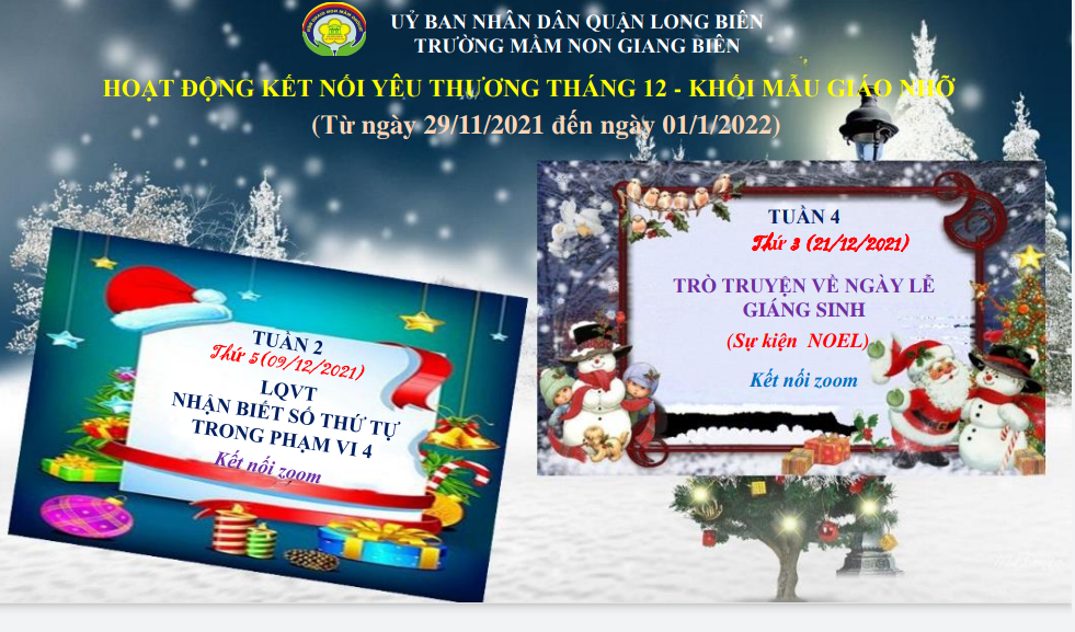 Hoạt động kết nối tháng 12 đã giúp các bé nhận biết được số thứ tự trong phạm vi 4 qua các trò chơi tương tác. Củng cố cho các bé biết được số liền trước, số liền sau của dãy số 1,2,3,4. Qua buổi hoạt động giao lưu kết nối của tuần 4 tháng 12 các bé đã hiểu thêm ý nghĩa của ngày lễ Giáng Sinh.