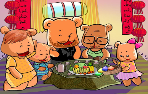 &ldquo !important;Bác Voi tới nhà Gấu con chơi và tặng Gấu con một rổ lê thơm. Gấu con mừng lắm và không quên cám ơn bác Voi.