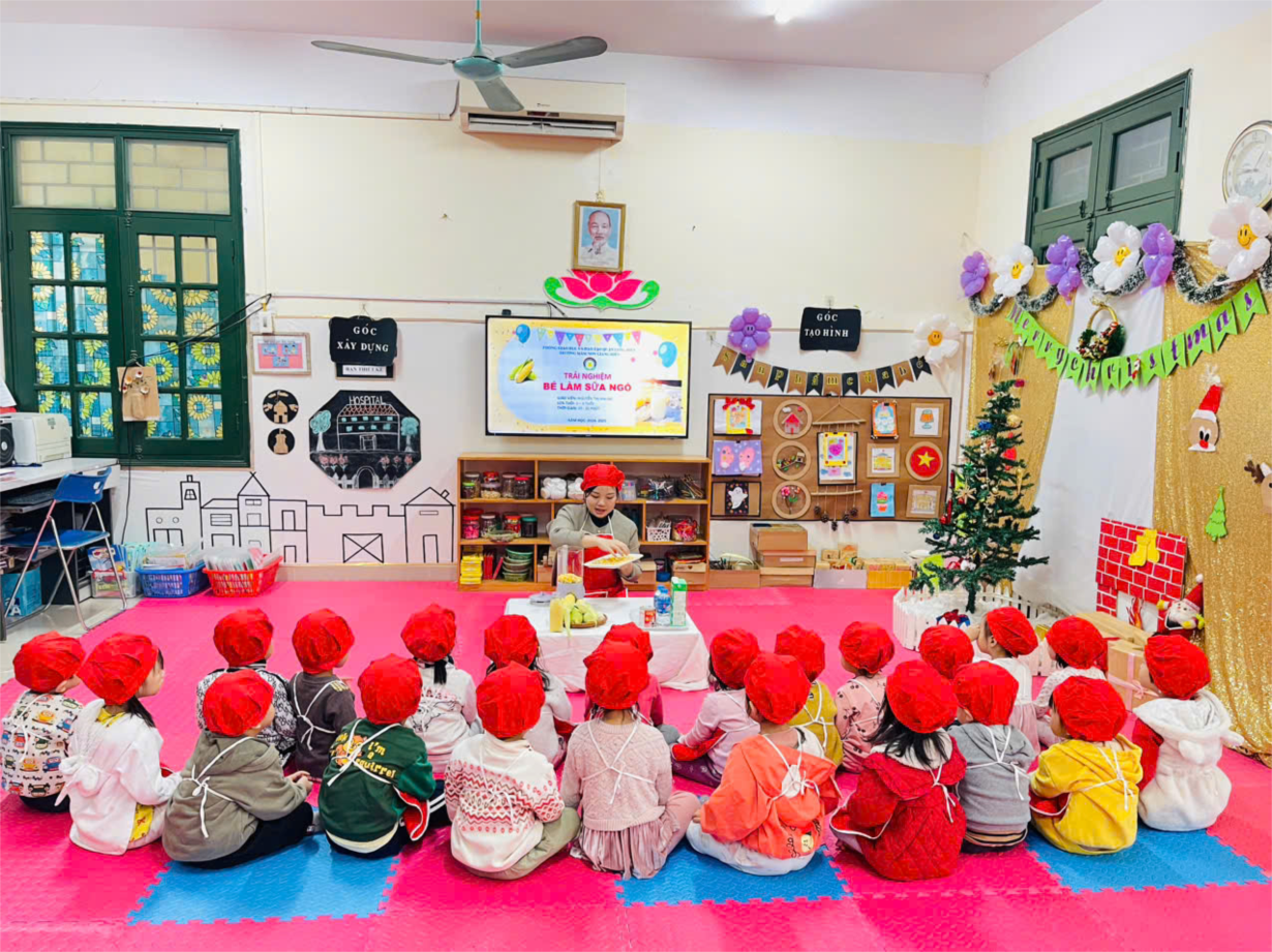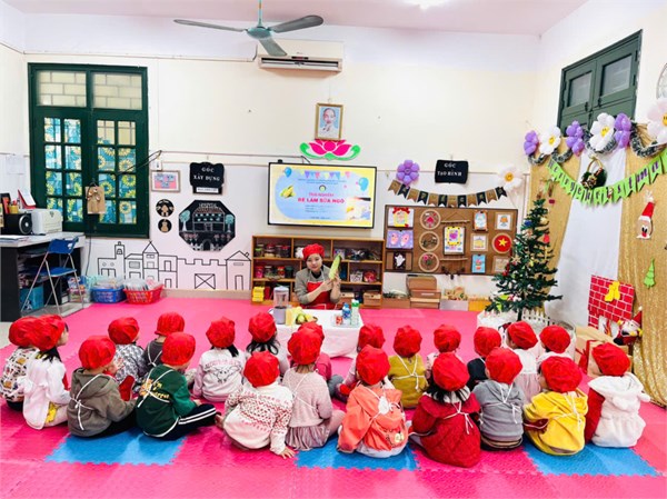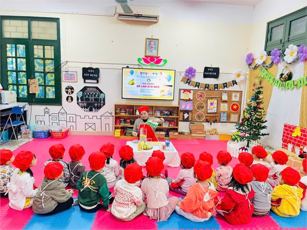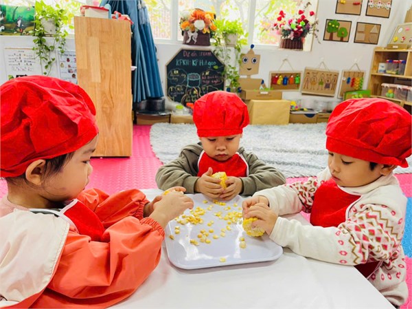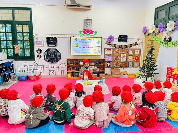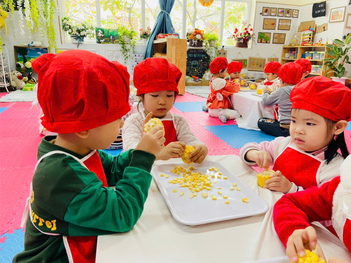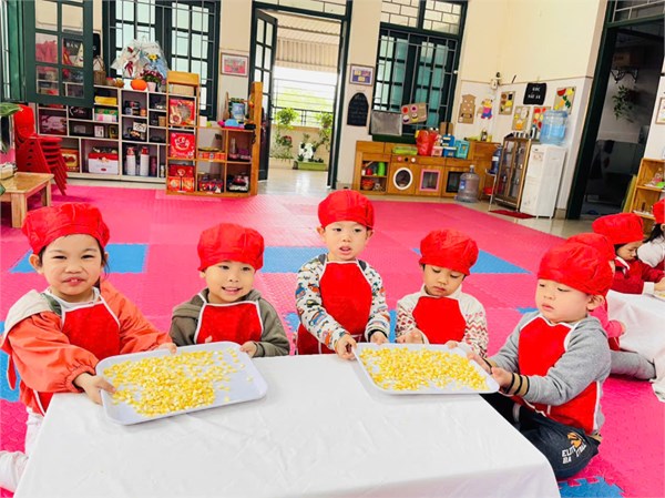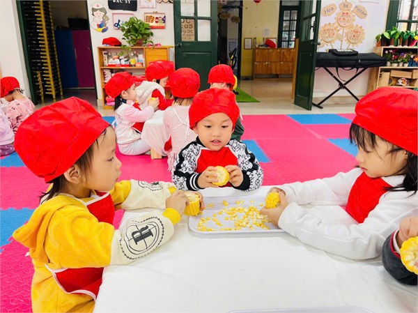 Tập ảnh : Các bé lớp C1 trải nghiệm làm sữa ngô