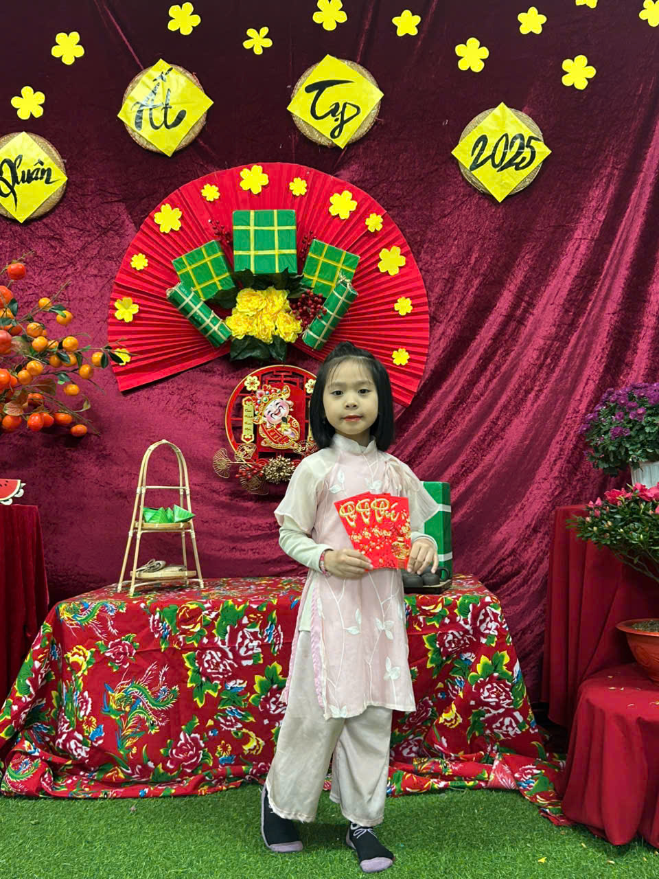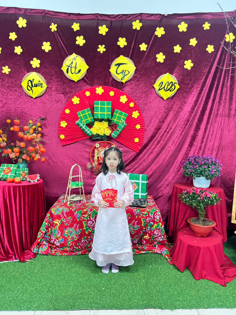 Nhân dịp Tết cổ truyền Ất Tỵ, các bé lớp mẫu giáo lớn A1 trường mầm non Giang Biên đã hóa thân rực rỡ trong những tà áo dài truyền thống. Bộ sưu tập ảnh ghi lại những khoảnh khắc ngọt ngào, hồn nhiên và đáng yêu của các bé khi diện những bộ áo dài đủ màu sắc, từ đỏ, vàng may mắn đến xanh, hồng dịu dàng. Mỗi bức ảnh là một nét xuân tràn đầy niềm vui và sự háo hức của tuổi thơ. Đây không chỉ là kỷ niệm đẹp mà còn là cơ hội để các bé hiểu và thêm yêu văn hóa truyền thống của dân tộc. 🌸