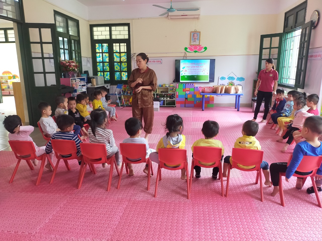 !important; Nâng cao chất lượng chuyên môn là một trong những mục tiêu, nhiệm quan trọng của toàn ngành giáo dục cũng như của mỗi nhà trường. Để thực hiện tốt nhiệm vụ này, hàng năm trường mầm non Giang Biên đều tổ chức thi giáo viên, nhân viên giỏi cấp trường. Qua đó góp phần thúc đẩy chất lượng dạy và học cũng như công tác bồi dưỡng, xây dựng đội ngũ giáo viên. Hội thi giáo viên dạy giỏi năm nay có sự đổi mới so với những năm trước. Nội dung thi được tổ chức dưới 2 phần thi đó là thi thuyết trình và thi thực hành. Có thể nói, đây là cơ hội thuận lợi để giáo viên chúng tôi được tìm hiểu, trao đổi, học tập những kiến thức cơ bản về chuyên môn, nghiệp vụ, những kinh nghiệm và phương pháp dạy học tốt nhất. Đến với hội thi này, cô giáo Nguyễn Thị Hòa đã tham gia hội thi với đề tài dạy trẻ biết bỏ rác đúng nơi quy định. Giờ học có ý nghĩa thiết thwucj mang đến cho các bé sự thích thú.