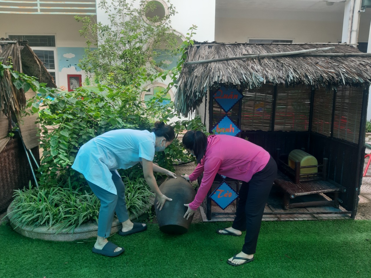 Sáng nay, thứ 7 ngày 18/9/2021, CBGVNV trường Mầm non Giang Biên đã thực hiện thu gom, hủy các vật dụng phế thải xung quanh trường như chai, lọ, ống bơ, lốp cũ..., dọn vệ sinh môi trường, lật úp các dụng cụ chứa nước khi không dùng đến để phòng chống dịch sốt xuất huyết. Bên cạnh đó, BGH nhà trường đã linh hoạt trong việc phân công CBGVNV tham gia vệ sinh phù hợp, đảm bảo giãn cách để thực hiện tốt công tác phòng chống dịch Covid-19.