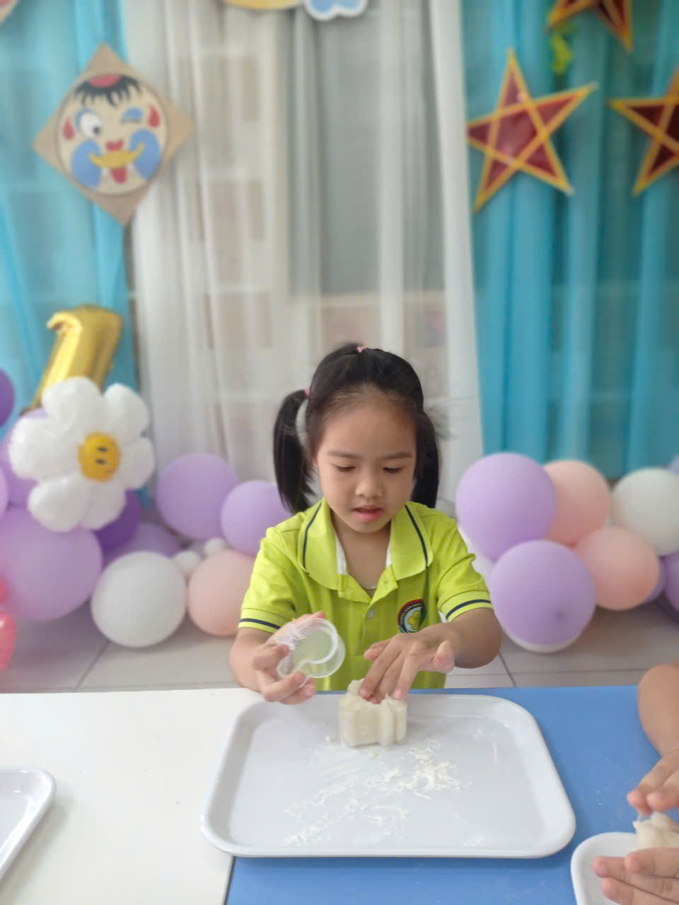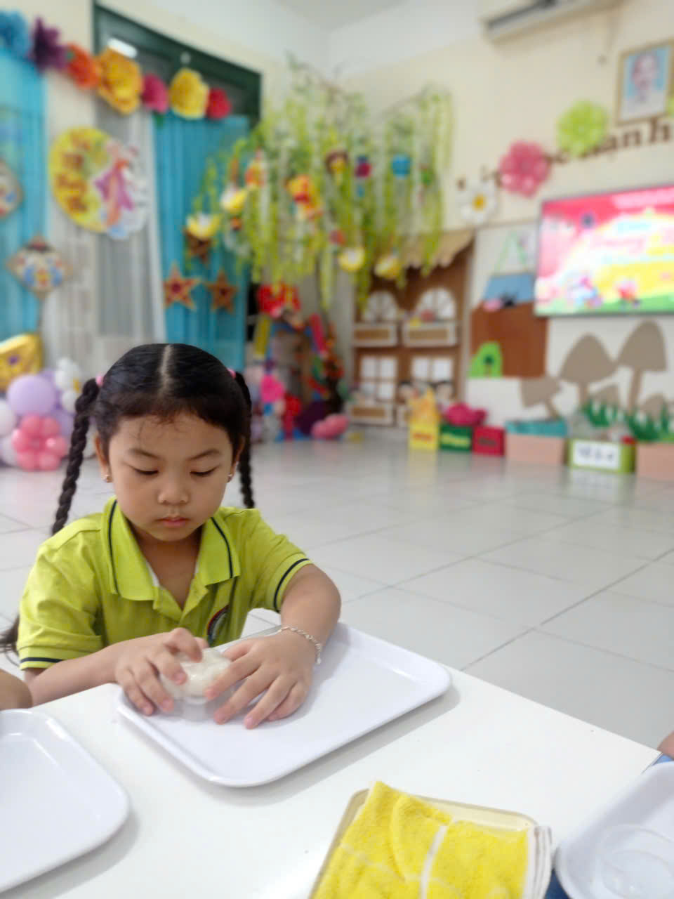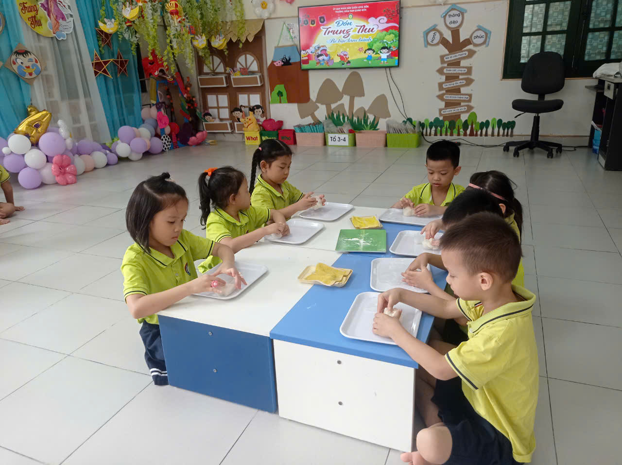 Vào sáng ngày 14/9/2024, các bé lớp A1 đã hào hứng tham gia hoạt động làm bánh trung thu tại trường. Dưới sự hướng dẫn tận tình của các cô giáo, các bé đã được tìm hiểu về các nguyên liệu, cách làm và tự tay nặn ra những chiếc bánh đáng yêu. Hoạt động không chỉ giúp các bé phát triển kỹ năng thủ công mà còn tạo không khí vui tươi, hào hứng, giúp các bé hiểu thêm về ý nghĩa của Tết Trung thu - một ngày lễ truyền thống đầy ý nghĩa của dân tộc.