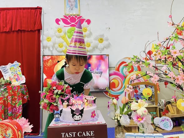Các bạn nhỏ lớp MGN B2 cùng nhau thắp nến, hát vang bài hát “Happy Birthday” và cùng nhau tận hưởng chiếc bánh kem thật ngọt ngào để chúc mừng sinh nhật bé Minh Phương. Đón tuổi mới bên cô và các bạn thật là vui!