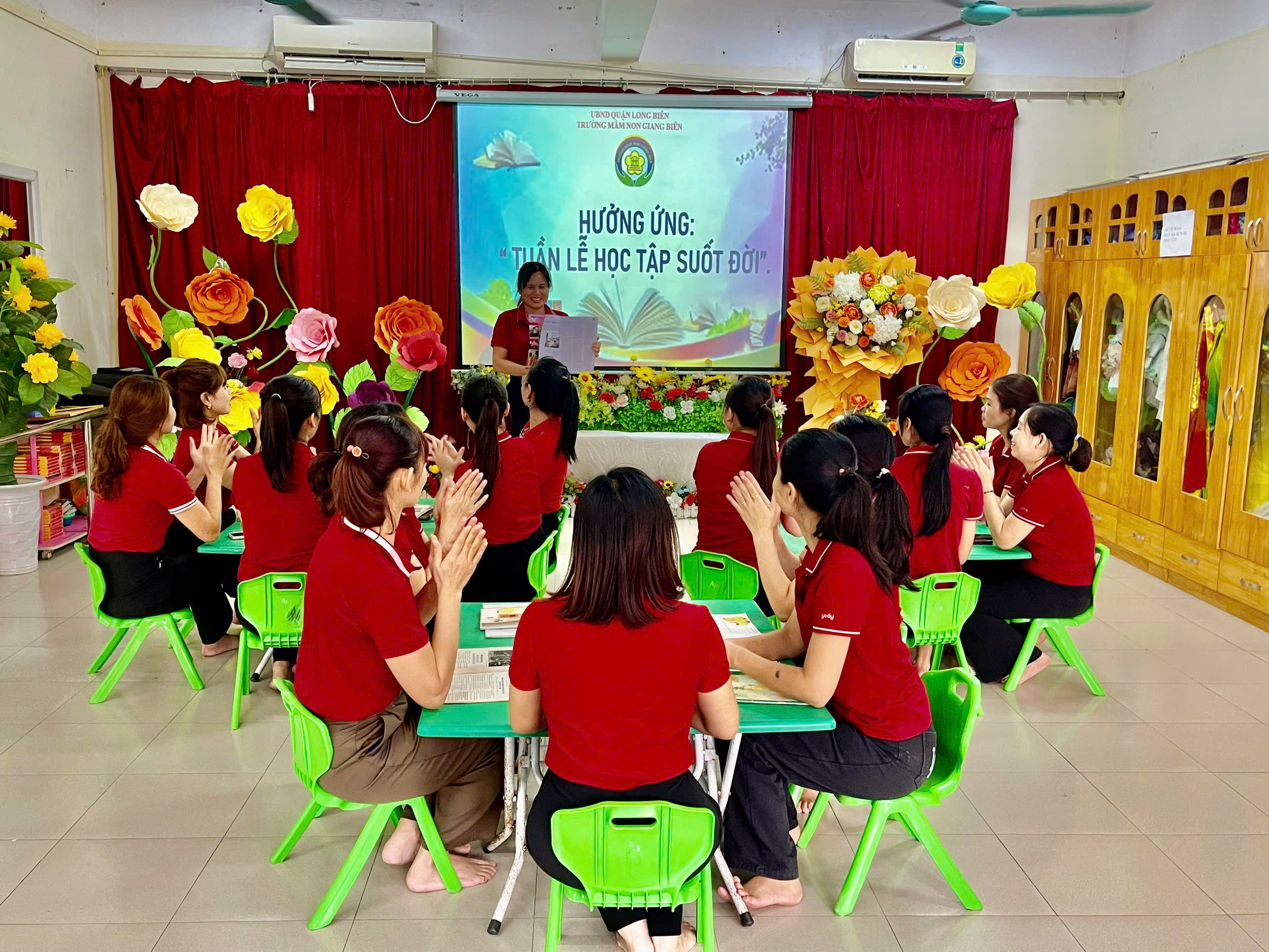 🥰Chính vì vậy, các cô giáo trường mầm non Giang Biên luôn khuyến khích các con đọc sách thường xuyên và các cô cũng tạo môi trường đọc sách lý tưởng để giúp các con hứng thú hơn trong việc đọc sách ngay từ khi còn nhỏ. Việc tổ chức tuần lễ họctập suốt đời 2024 với chủ đề "Phát triển văn hóa đọcthúc đẩy học tập suốt đời" như một lời nhắc nhở cô và trò trường mầm non Giang Biên về tầm quan trọng của việc đọc sách. Hãy cùng nhau chung tay xây dựng một xã hội đọc, nơi mà việc đọc sách trở thành một phần không thể thiếu trong cuộc sống của mỗi người.