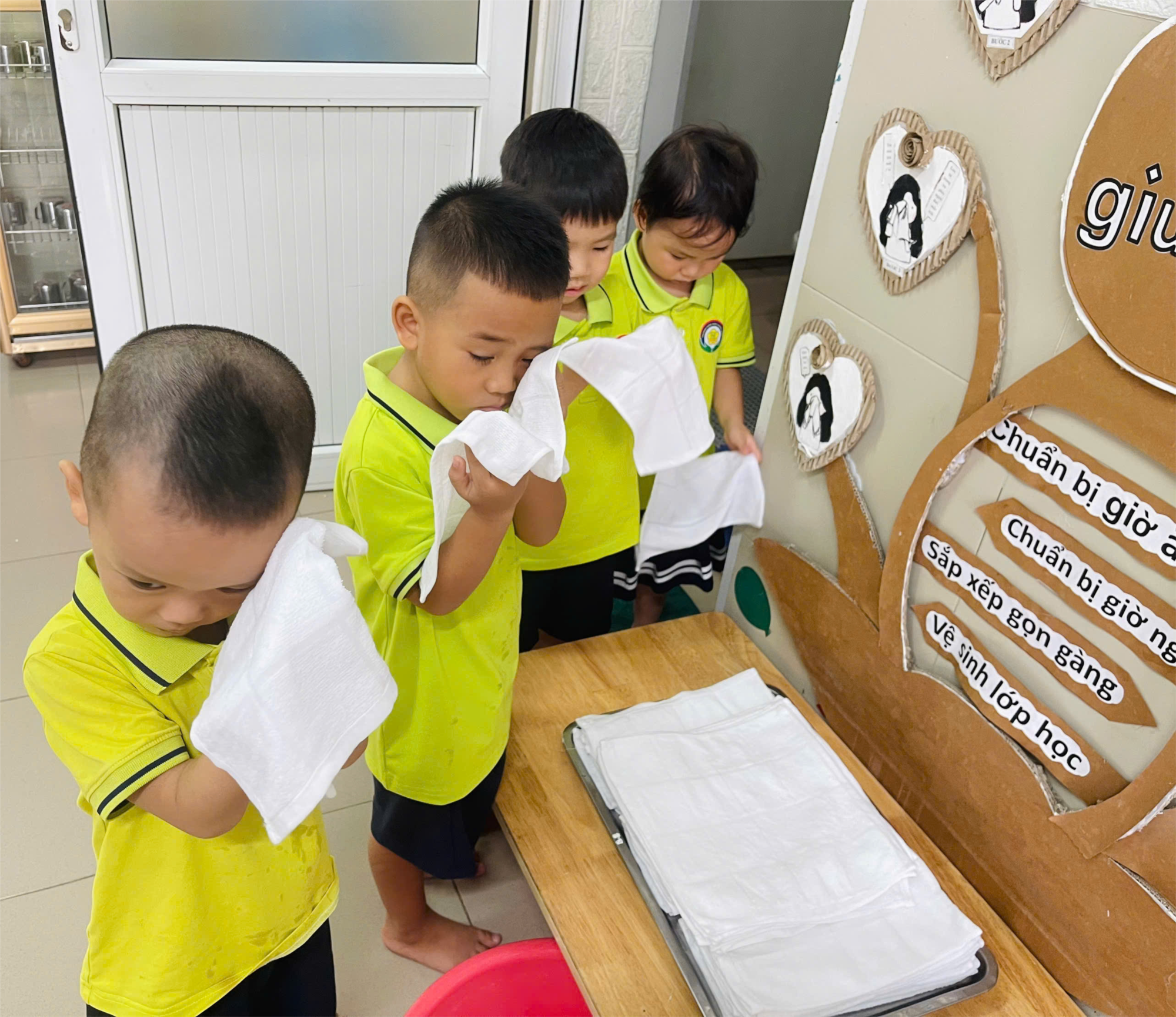 Vệ sinh cá nhân là thói quen cần phải rèn cho trẻ một cách thường xuyên. Một trong những thói quen vệ sinh đó là lau mặt và lau miệng giúp trẻ luôm sạch sẽ phòng chống được các bệnh. Mời các bạn cùng ghé thăm giờ học lau mặt và lau miệng cùng các bạn nhỏ lớp MGN B2 nhé!
