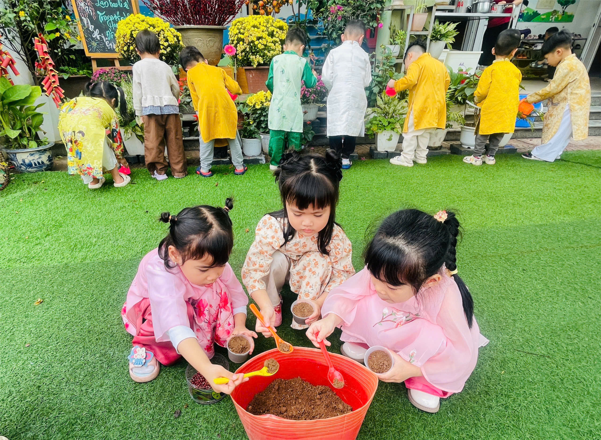 Để các con tự tay gieo hạt, trồng và chăm sóc cây giúp các con mở rộng sự hiểu biết về thế giới xung quanh, những hoạt động trải nghiệm học mà chơi, chơi mà học vô cùng lí thú.