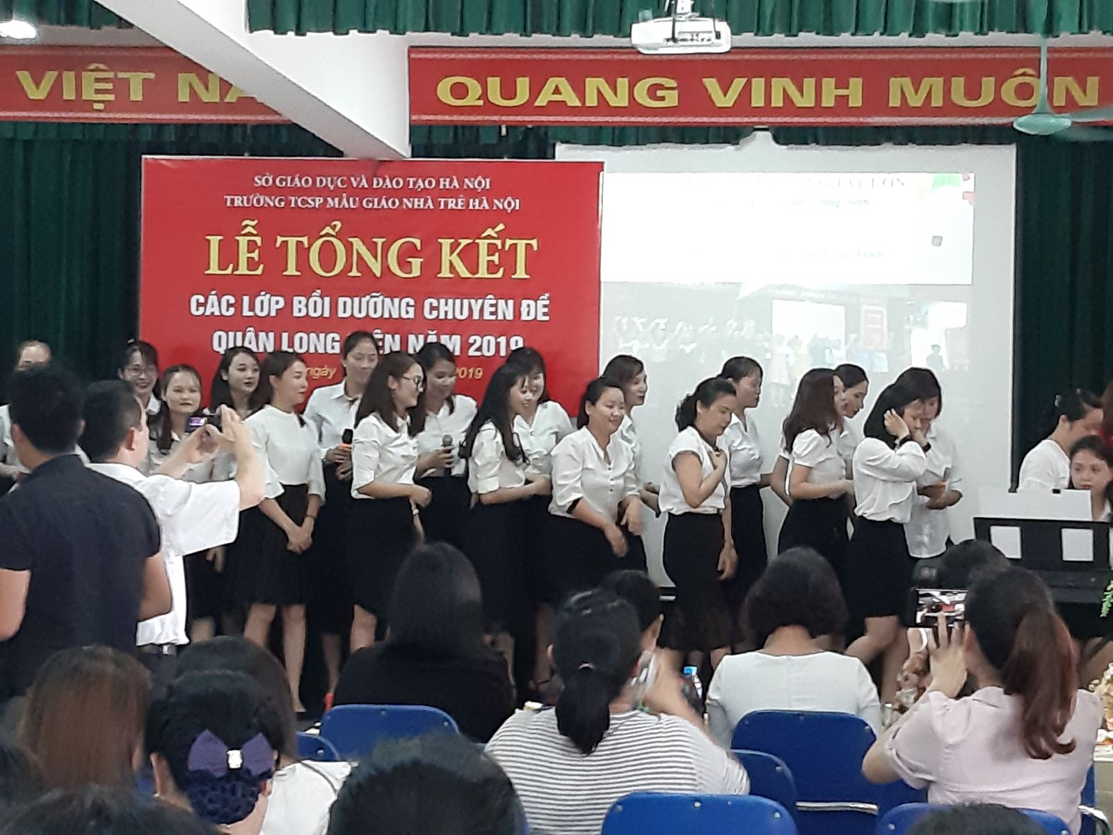 Thực hiện theo công văn số 4340 / SGD & ĐT- GDTX ngày 27/9/2019 của Sở GD& DD7 về tổ chức “ Tuần lễ hưởng ứng học tập suốt đời” năm 2019 và thực hiện theo sự chỉ đạo xây dựng xã hội học tập của BCĐ Quận Long Biên, trường mầm non Giang Biên đã phát động phong trào học tập suốt đời tới 100% cán bộ, giáo viên, nhân viên của trường. Học tập để nâng cao trình độ chuyên môn nghiệp vụ cho bản thân và đáp ứng yêu cầu trong công việc. Các đồng chí trong BGH nhà trường luôn sát sao chỉ đạo các đồng chí giáo viên, nhân viên không ngừng học tập, phấn đấu, tự bồi dưỡng chuyên môn của bản thân qua các buổi sinh hoạt của tổ, nhóm chuyên môn, học các lớp bồi dưỡng chuyên đề do PGD tổ chức để nhằm nâng cao chất lượng giáo dục trong toàn trường, mỗi cán bộ giáo viên phải coi việc học tập là trách nhiệm của bản thân, vì cộng đồng và xã hội. Bởi vậy trong những năm qua BGH luôn chỉ đạo tốt việc tự bồi dưỡng của giáo viên, cho giáo viên đăng kí học tập , bồi dưỡng theo các chuyên đề, xây dựng kế hoạch bồi dưỡng thường xuyên của bản thân và cuối năm báo cáo kết quả đã làm được trong năm học.