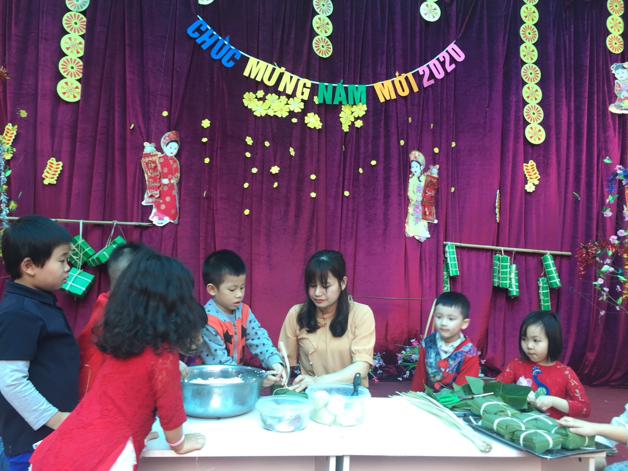 Để giáo dục cho trẻ biết những phong tục tập quán trong ngày tết cổ truyền hôm nay ngày 15/1/2020 cô giáo Vũ Thị Thủy và Nguyễn Thị Hồng Phượng- Giáo viên chủ nhiệm lớp MGL A1 đã cho các con trải nghiệm gói bánh chưng. Ngoài việc giáo dục truyền thống, phong tục tập quán của con người Việt Nam cô giáo còn cho trẻ khám phá về các nguyên vật liệu để tạo nên chiếc bánh, quy trình làm bánh, ý nghĩa của chiếc bánh chưng trong dịp Tết. Hoạt động này được các con vô cùng thích thú.