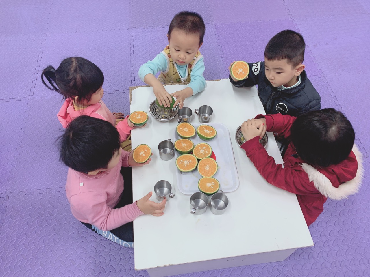 Sá !important;ng nay, cô và trò lớp mẫu giáo bé C3 đã tổ chức hoạt động “Tập vắt cam”. Đây là một trong những hoạt động rất hấp dẫn đối với các trẻ bởi vì các con được tự tay làm món nước uống bổ dưỡng mà mình thích.