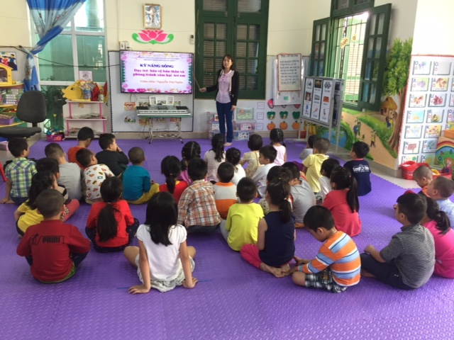 Hôm nay các bé lớp MGL A2 được học về cách bảo vệ bản thân mình. Giờ học cung cấp cho các bé biết cách giữ gìn và bảo vệ cơ thể của mình qua quy tắc “5 không”: Tuyệt đối không đi theo người lạ, không cho người khác chạm vào các vùng kín trên cở thể, không vào phòng của người lạ, không mở cửa cho người lạ , không lấy bất cứ thứ gì từ người lạ.Các bé rất hào hứng và đã biết được cách tự bảo vệ cơ thể, bản thân mình.