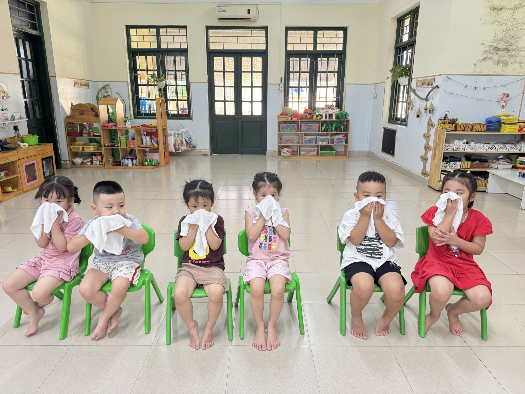 Đối với trẻ mẫu giáo, việc vệ sinh cá nhân cho trẻ là một trong những yêu cầu cơ bản và quan trọng nhất, trong đó tất nhiên không thể thiếu rửa mặt.Nhìn có vẻ dễ dàng nhưng các bước rửa mặt cho trẻ không đơn giản như bạn nghĩ, các thao tác phải nhẹ nhàng, đúng cách, việc dịch vị trí khăn, gấp khăn trẻ quan sát và làm đúng quan trọng là làm sao để da mặt trẻ không tiếp xúc lại với phần khăn bẩn, tránh dùng phần khăn đã tiếp xúc da mặt trước đó lau lại trên mặt trẻ.