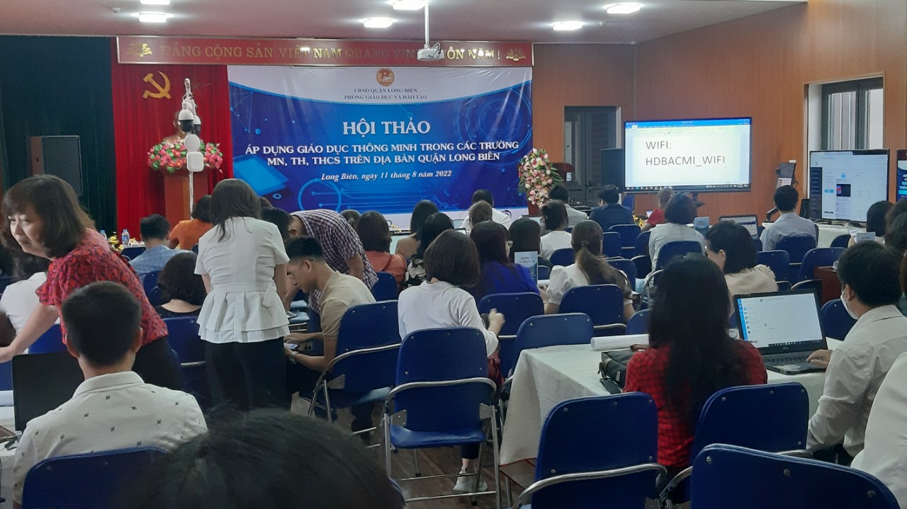 Sáng ngày 11/8/2023 đại diện ban giám hiệu nhà trường có đồng chí Hoàng Thị Phương- Bí thư chi bộ- Hiệu trưởng nhà trường và đồng chí Nguyễn Thị Ngân- Phó hiệu trưởng nhà trường đã tham dự buổi Hội thảo "Áp dụng giáo dục thông minh trong các trường MN,TH,THCS trên đại bàn quận Long Biên" do PGD và đào tạo Quận tổ chức. Buổi Hội thảo đã giới thiệu nhiều tính năng của mô hình trường học thông minh.