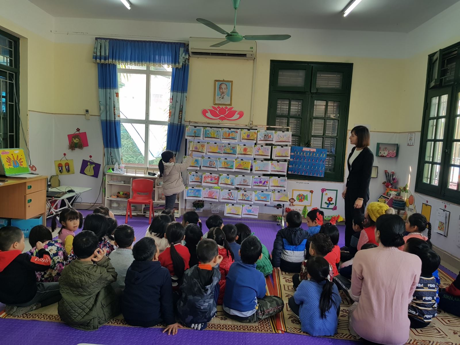 Tiết học Tạo hình "Vẽ con vật àm bé yêu thích " được giáo viên chuẩn bị đầy đủ đồ dùng học liệu cho môn học như: Màu nước, sáp màu, bông, hồ, hạt kim sa.....Sau khi cho trẻ xem một số bức tranh mẫu , giáo viên đã biết đàm thoại về hình ảnh các con vật mà bé thích vẽ như: Hình dáng, màu sắc, cách vẽ, bố cục bức tranh. Sau giờ học giáo viên tổ chức cho trẻ chơi HĐG. Tiết học được tổ chuyên môn đánh giá xếp loại Giỏi.