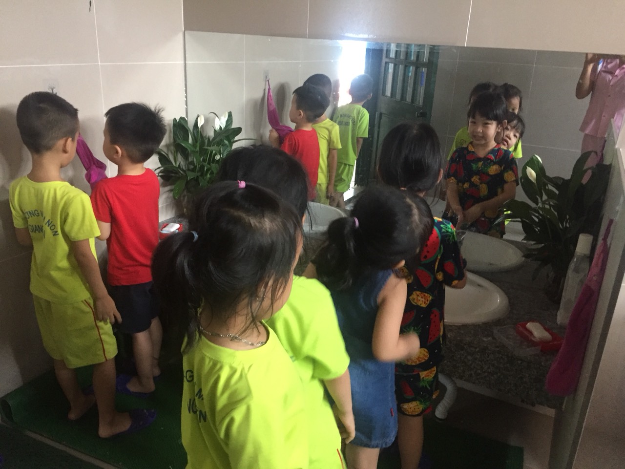 RÈN NỀ NẾP LAU MẶT, RỬA TAY TRƯỚC KHI ĂN CỦA CÁC BÉ LỚP MGL A1