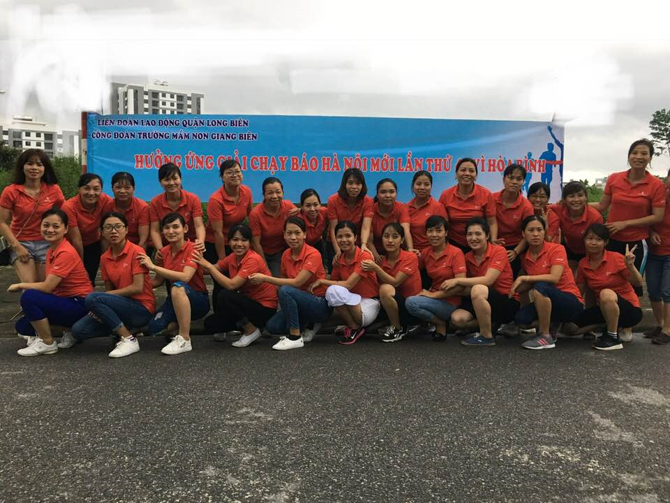 Thực hiện kế hoạch số 35/KH- LĐLĐ về tổ chức giải chạy báo hà nội mới lần thứ 45 vì hòa bình trong CNVCLĐV Quận Long Biên. Được sự nhất trí của chi bộ nhà trường đúng 17h ngày 16 tháng 8 năm 2018. Công đoàn trường mầm non Giang Biên đã tổ chức giải báo hà nội mới lần thứ 45 vì hòa bình có 50 đoàn viên công đoàn tinh thần thi đấu nhiệt tình, nghiêm túc, đoàn kết.