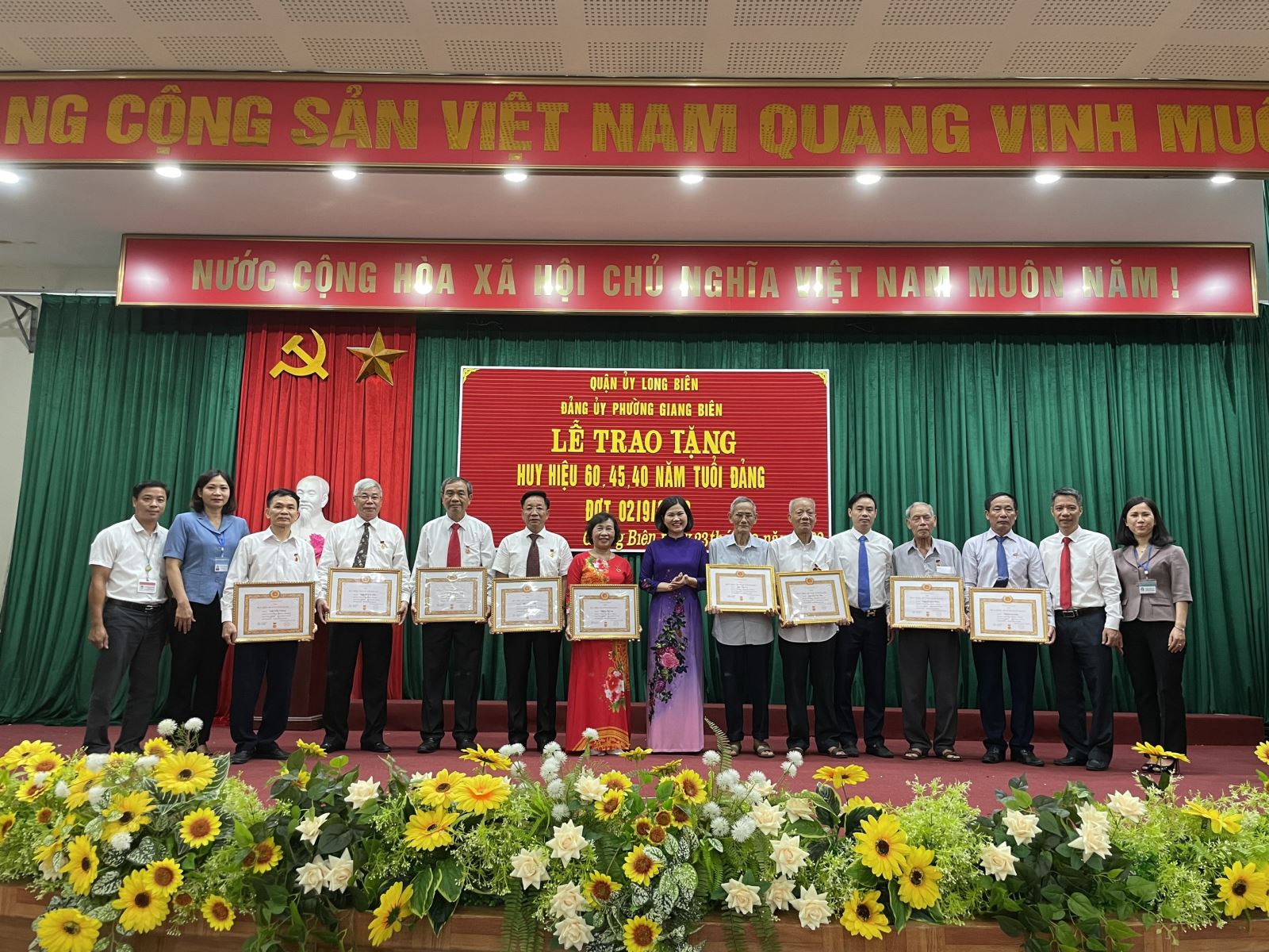 Tại Hội nghị đồng chí Đào Mạnh Trung - Phó Bí thư Thường trực Đảng ủy công bố Quyết định của Thành ủy Hà Nội về việc Tặng Huy hiệu Đảng đợt 02/9 đối với 17 đảng viên thuộc Đảng bộ phường Giang Biên. Trong đợt này, Đảng ủy phường Giang Biên vinh dự có 03 đồng chí đảng viên nhận Huy hiệu 60 năm, 02 đồng chí nhận huy hiệu 55 năm, 04 đồng chí nhận huy hiệu 50 năm, 02 đồng chí nhận huy hiệu 45 năm, 06 đồng chí nhận huy hiệu 40 năm tuổi Đảng. Đây là phần thưởng cao quý của Đảng ghi nhận, tôn vinh những đóng góp, cống hiến của các đồng chí đảng viên trong quá trình xây dựng và bảo vệ Tổ quốc.