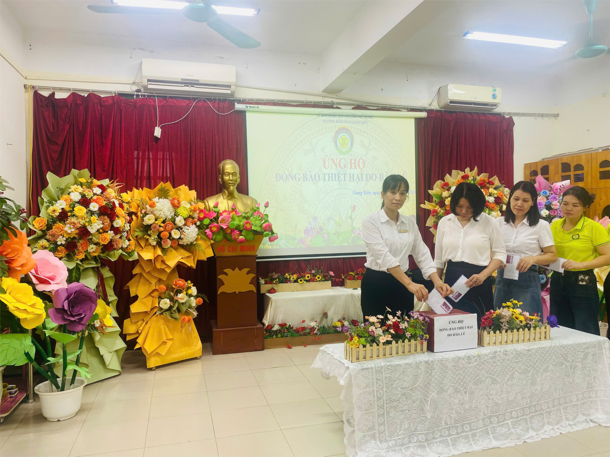 TRƯỜNG MẦM NON GIANG BIÊN PHÁT ĐỘNG ỦNG HỘ ĐỒNG BÀO THIỆT HẠI DO BÃO LŨ