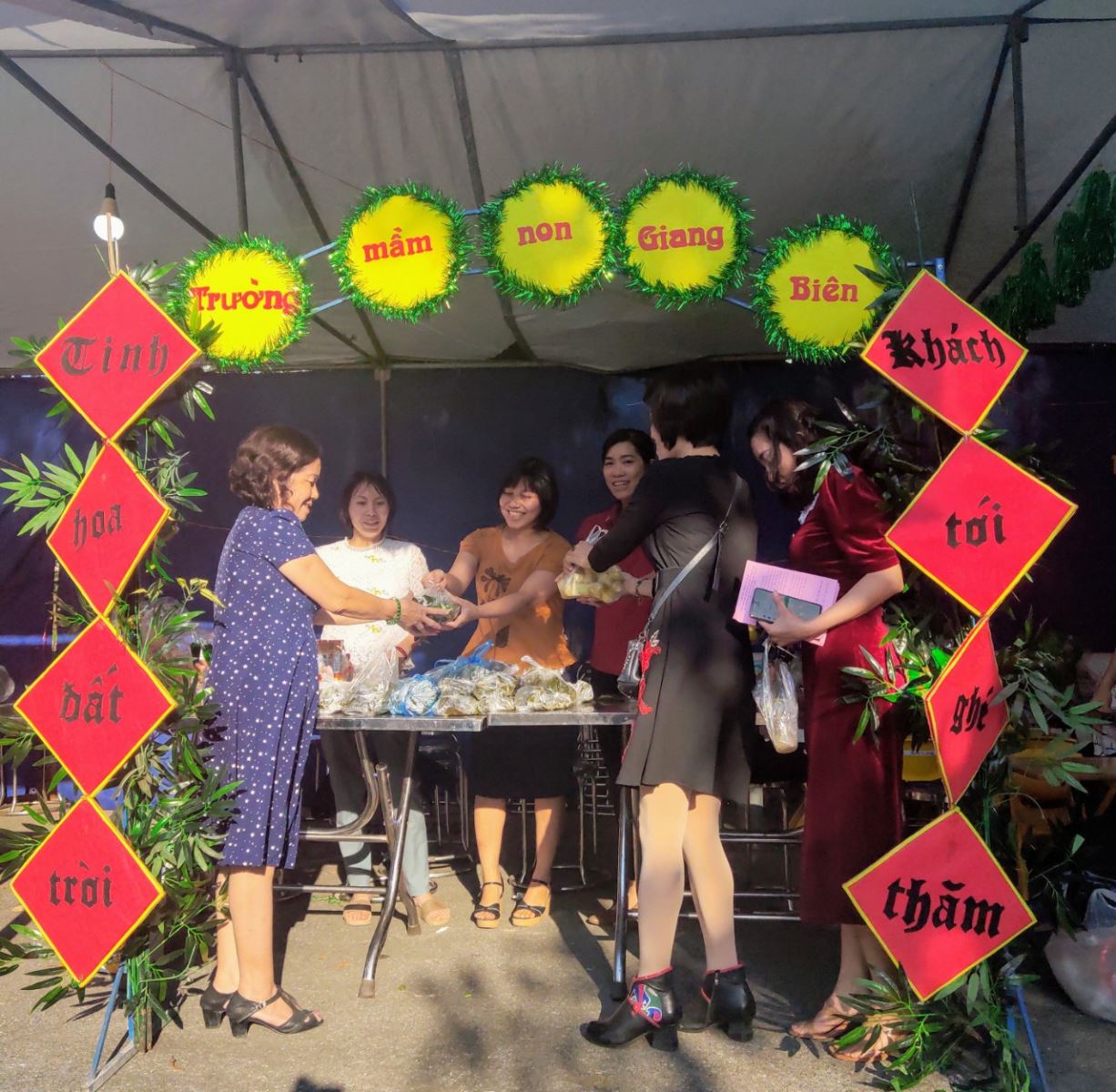 Hô !important;m nay thứ bảy, ngày 7/11/2020, trường mầm non Giang Biên tham gia "Hội chợ quê" tại UBND Phường Giang Biên nhằm chào mừng "Ngày hội đại đoàn kết toàn dân, kỷ niệm 90 năm ngày truyền thống Mặt trận Tổ Quốc Việt Nam 18/11/1030- 18/11/2020". Gian hàng của trường mầm non Giang Biên bày bán các mặt hàng phong phú như: Ngô, củ từ, bánh tẻ, bánh bột lọc, bánh đa, nước ngọt.... Gian hàng tấp nập, nhộn nhịp, không khí của buổi chơi quê náo nhiệt.