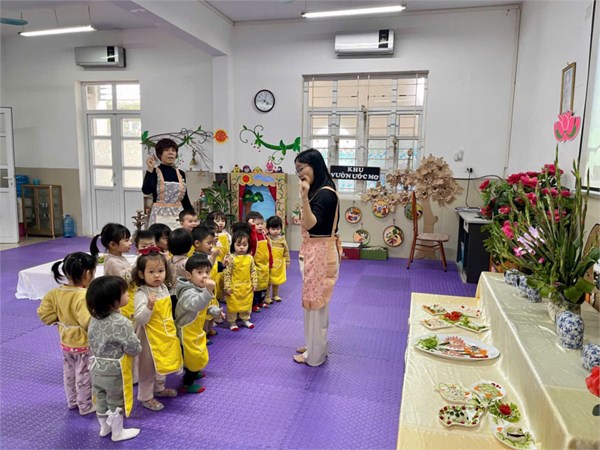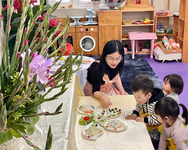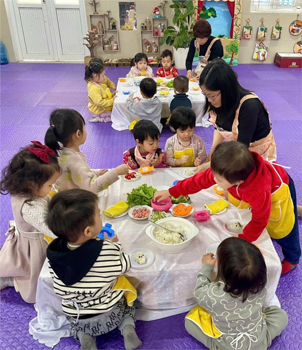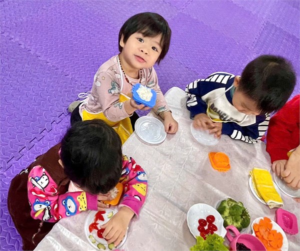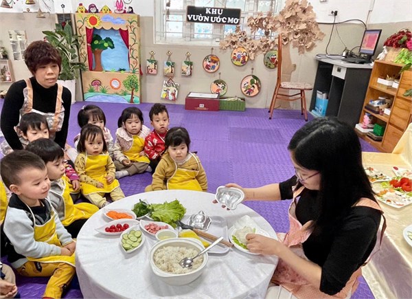 Tập ảnh : Một số hình ảnh các bé lớp NTD4 trong giờ HĐTH: hướng dẫn trẻ làm cơm bento