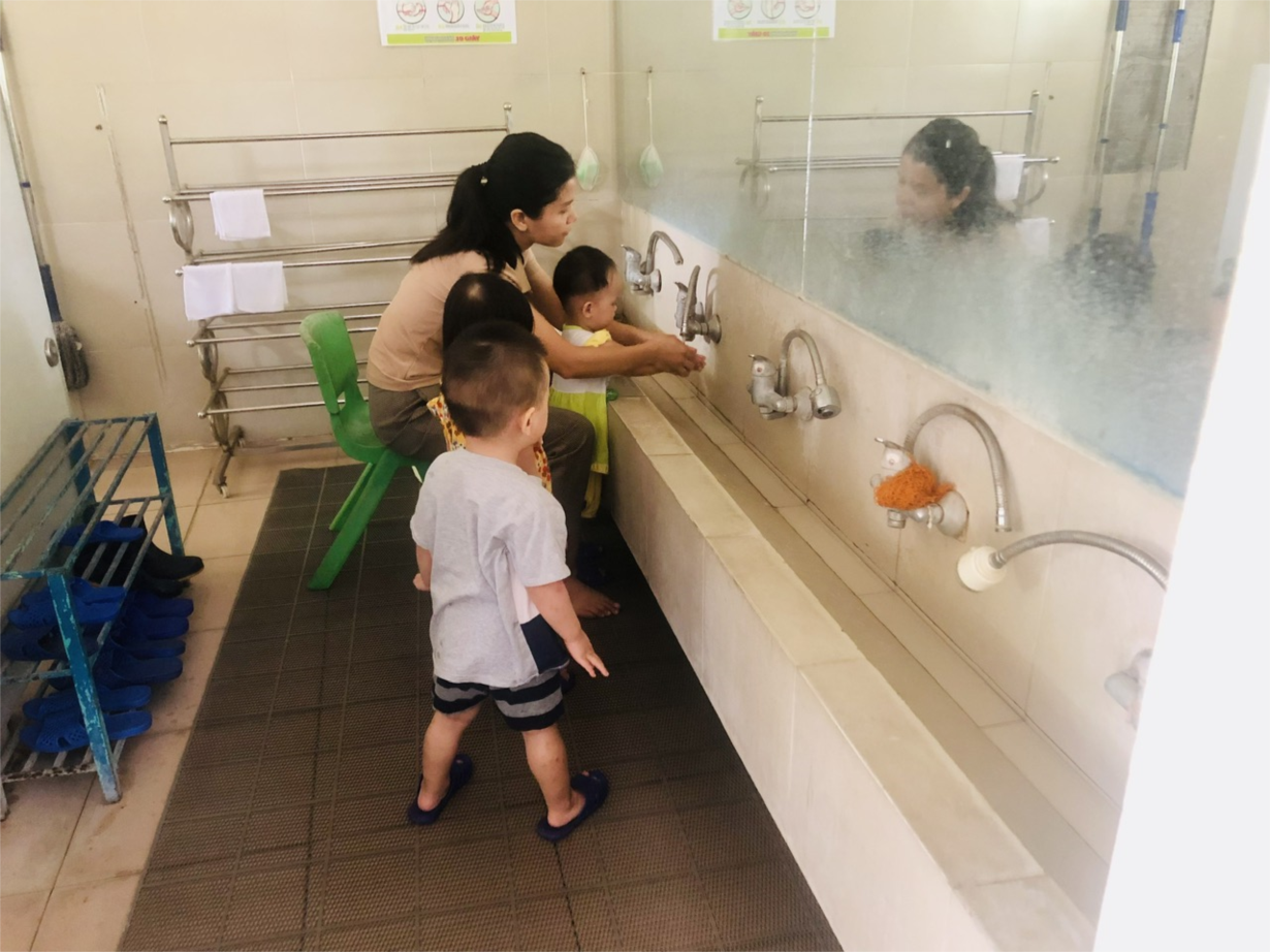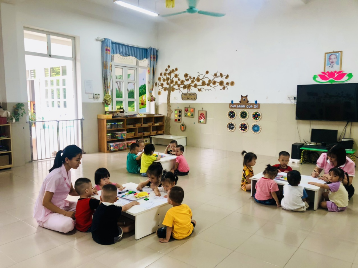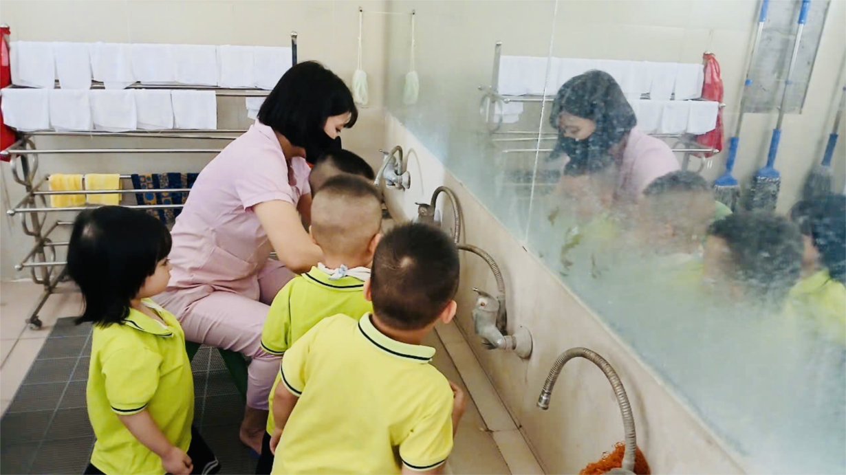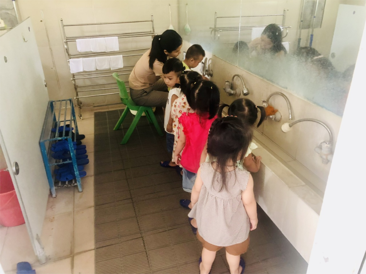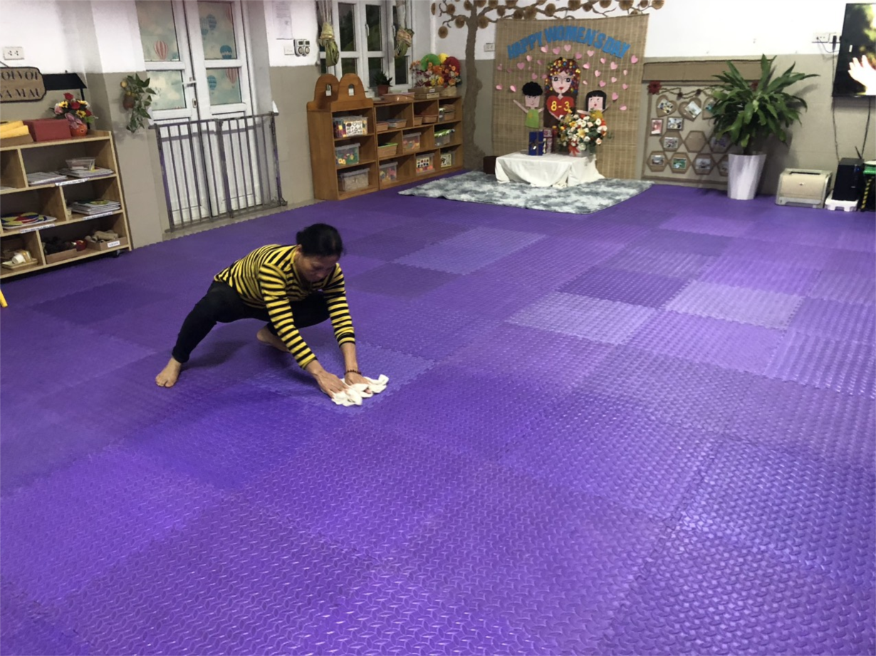 Các cô giáo lớp NTD3 đang tổng VS trong và ngoài lớp học
