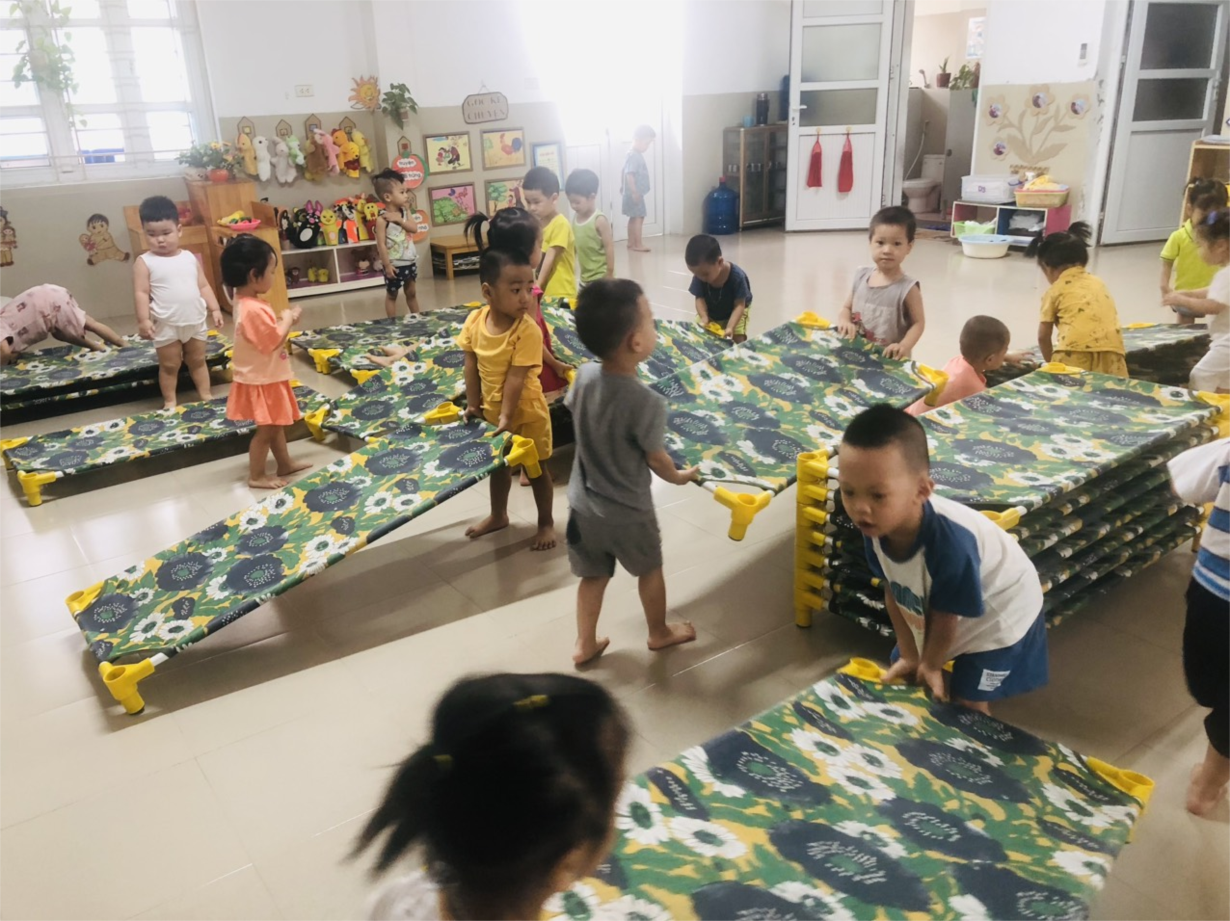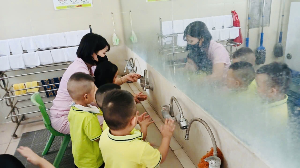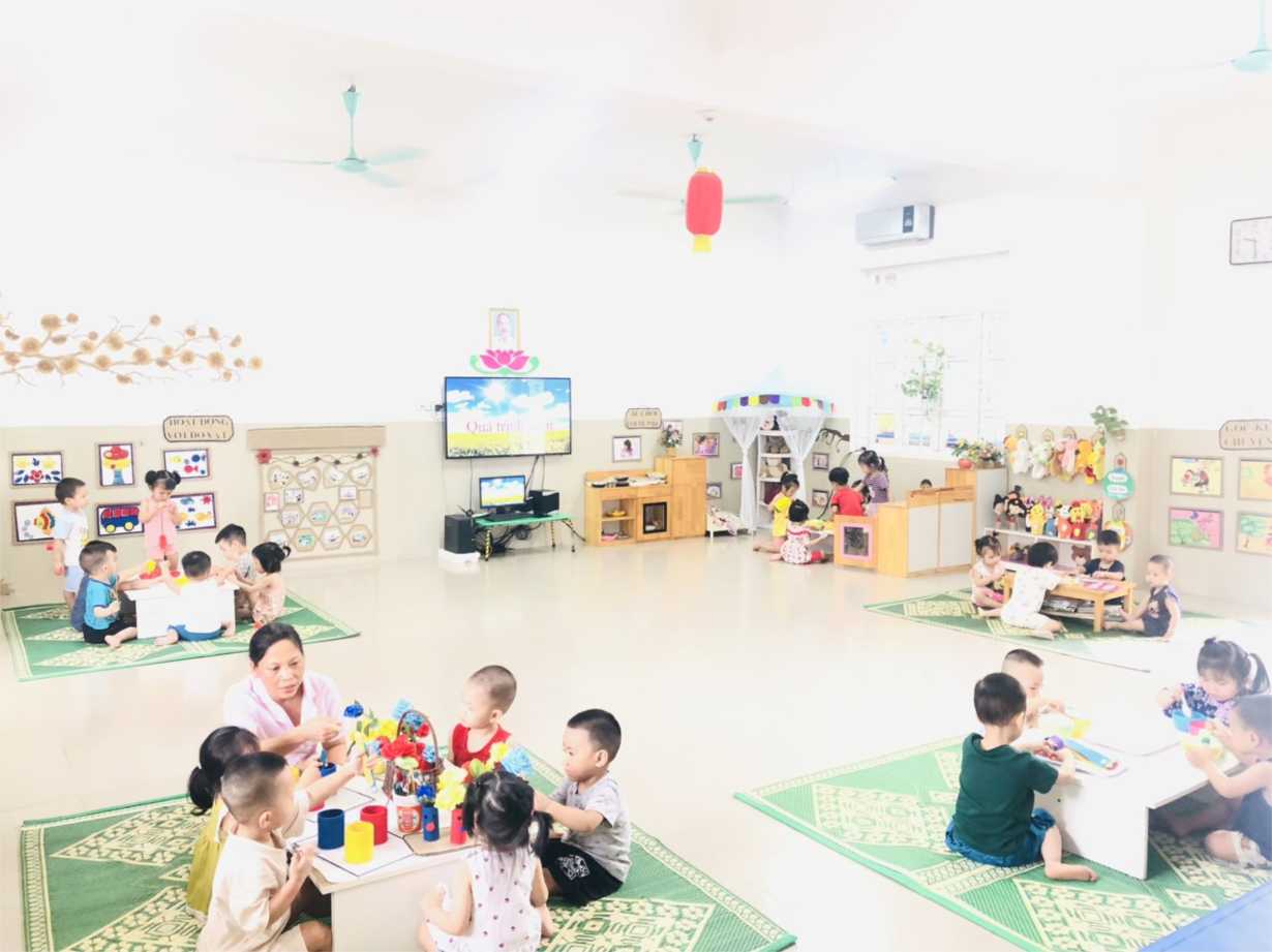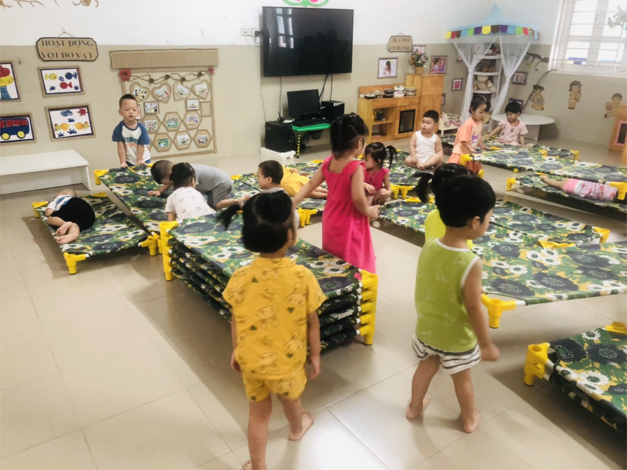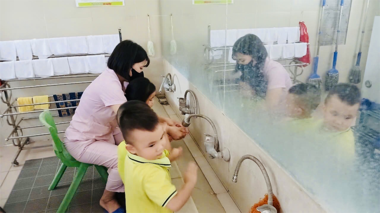 Các cô giáo lớp NTD3 đang tổng VS trong và ngoài lớp học