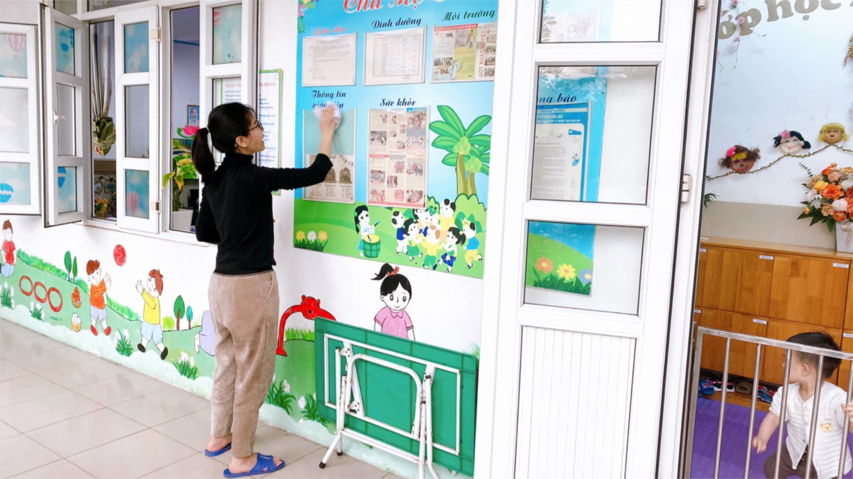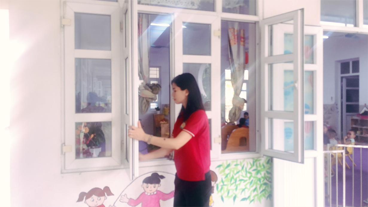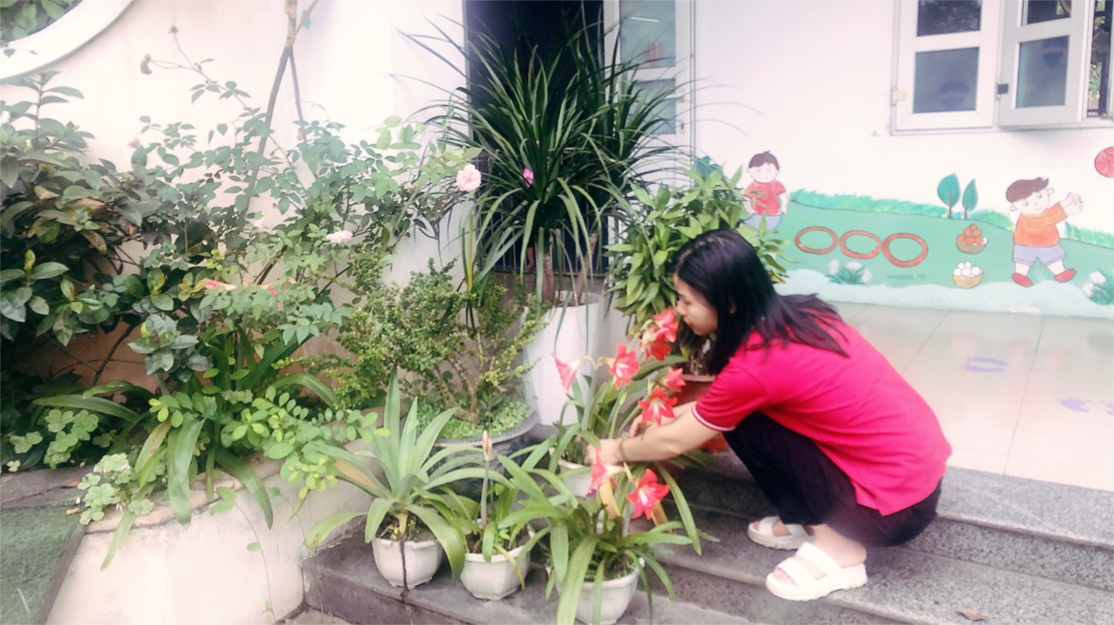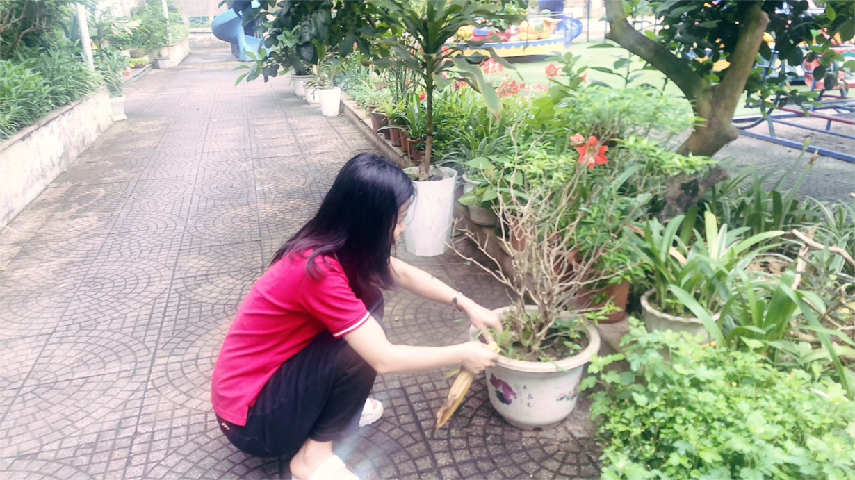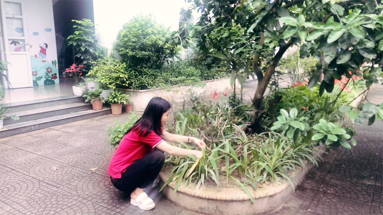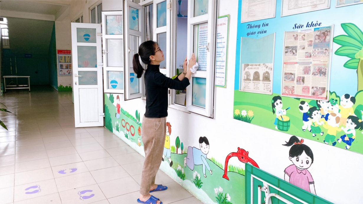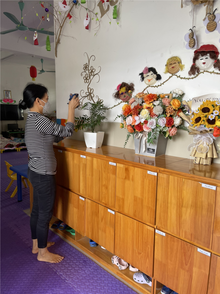 Cô giáo lớp NTD3 tổng vệ sinh trong và ngoài lớp học