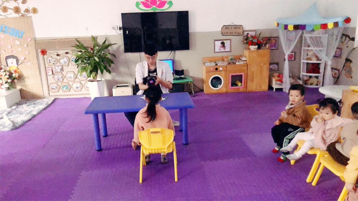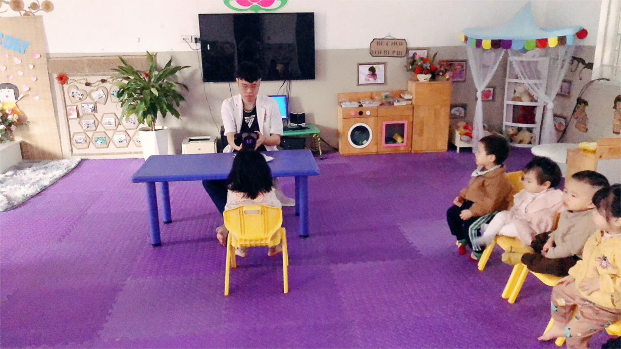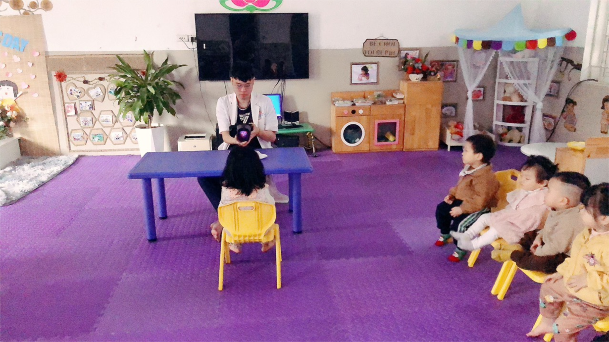 Các bé lớp NTD3 đo sàng lọc tật khúc xạ mắt