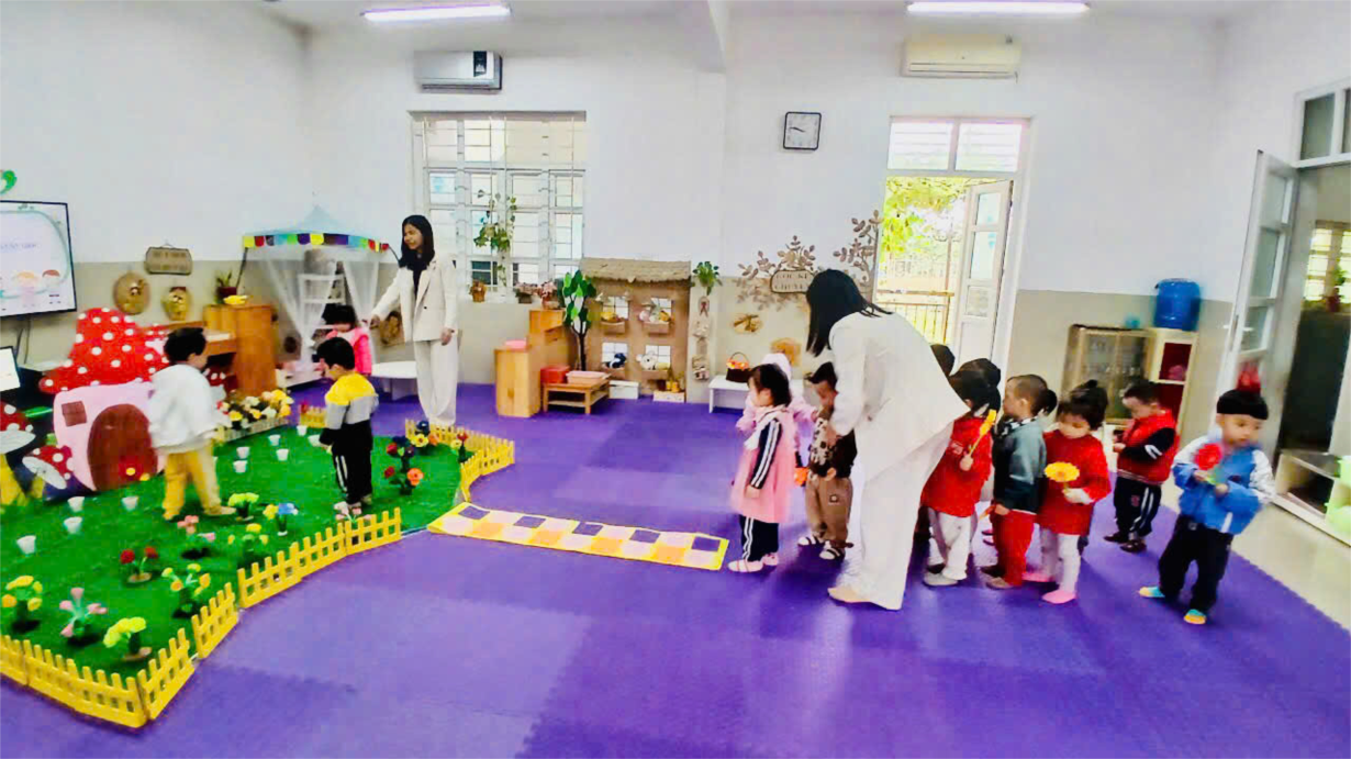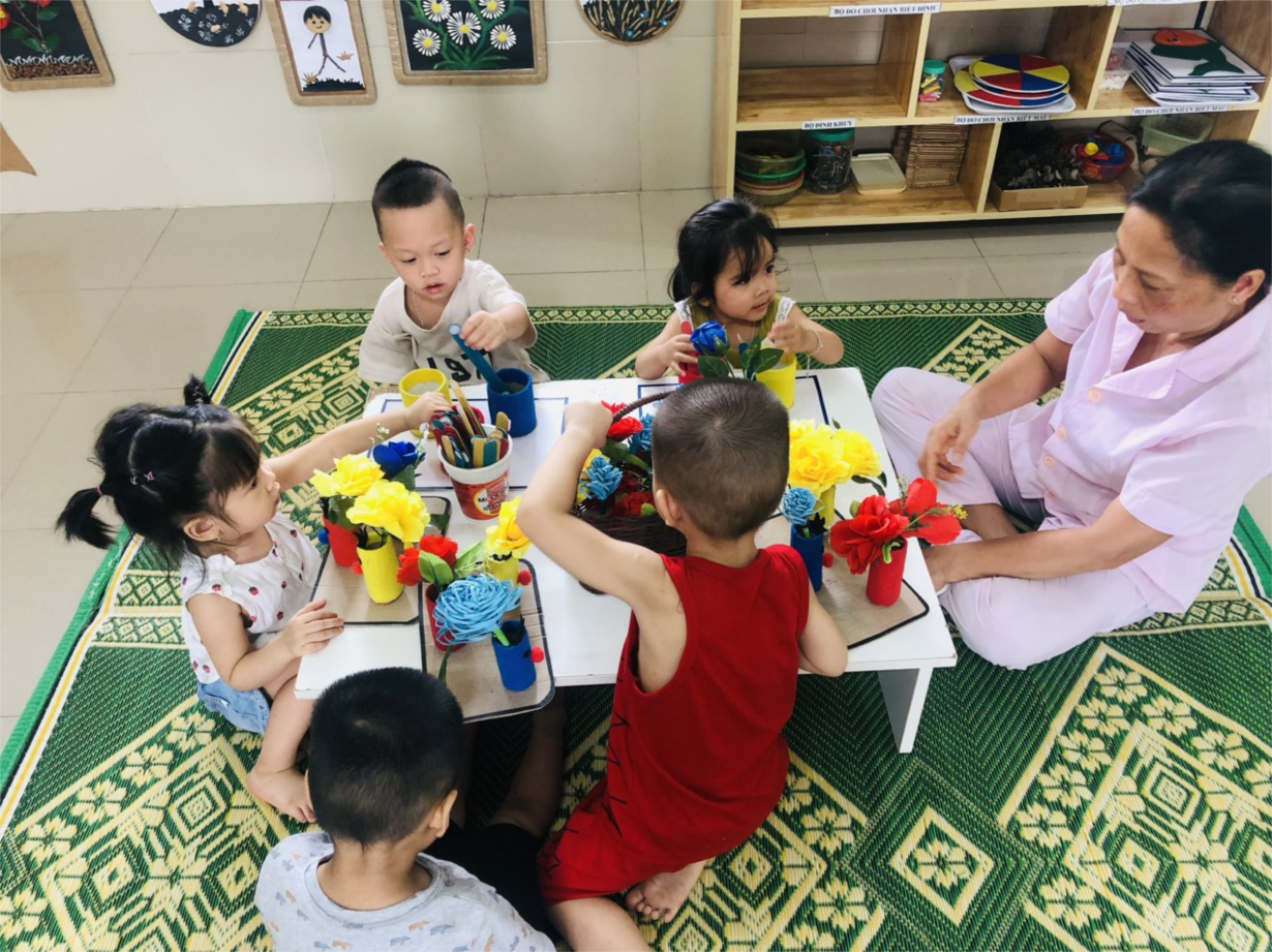 Các bé lớp NTD3 cắm hoa tặng bà tặng mẹ