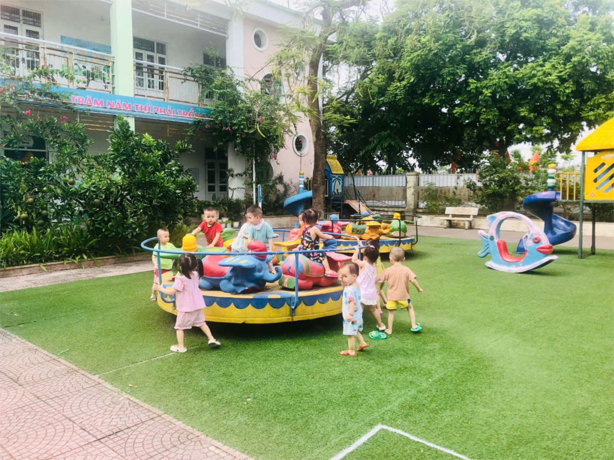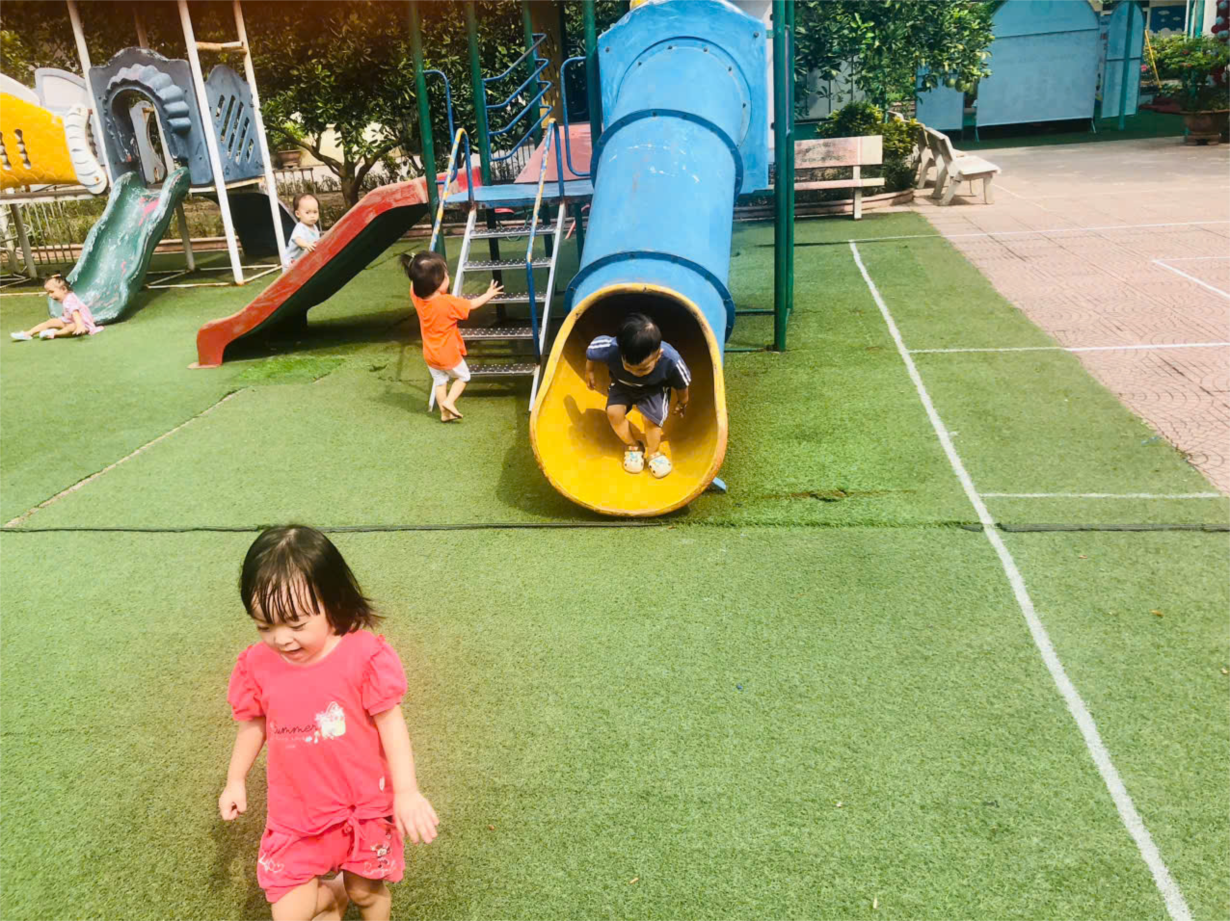 các bé lớp NTD3 vui chơi ngoài trời