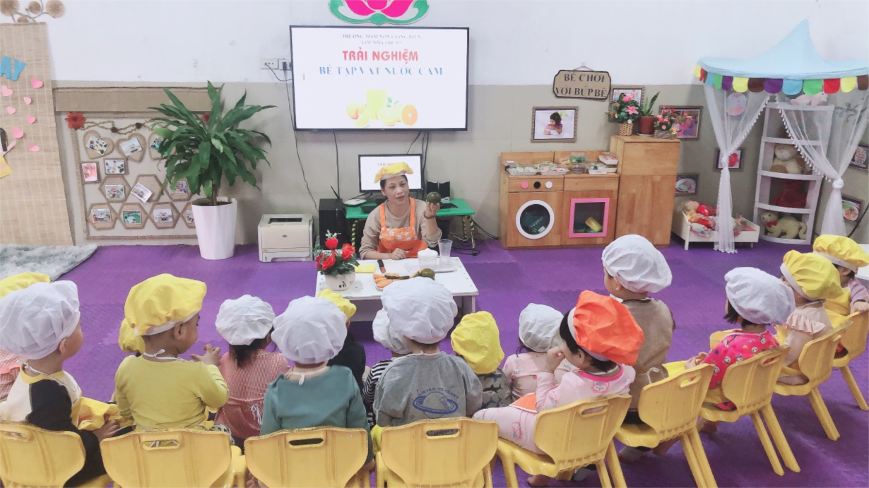Các bé lớp NTD3 trải nghiệm vắt nước cam