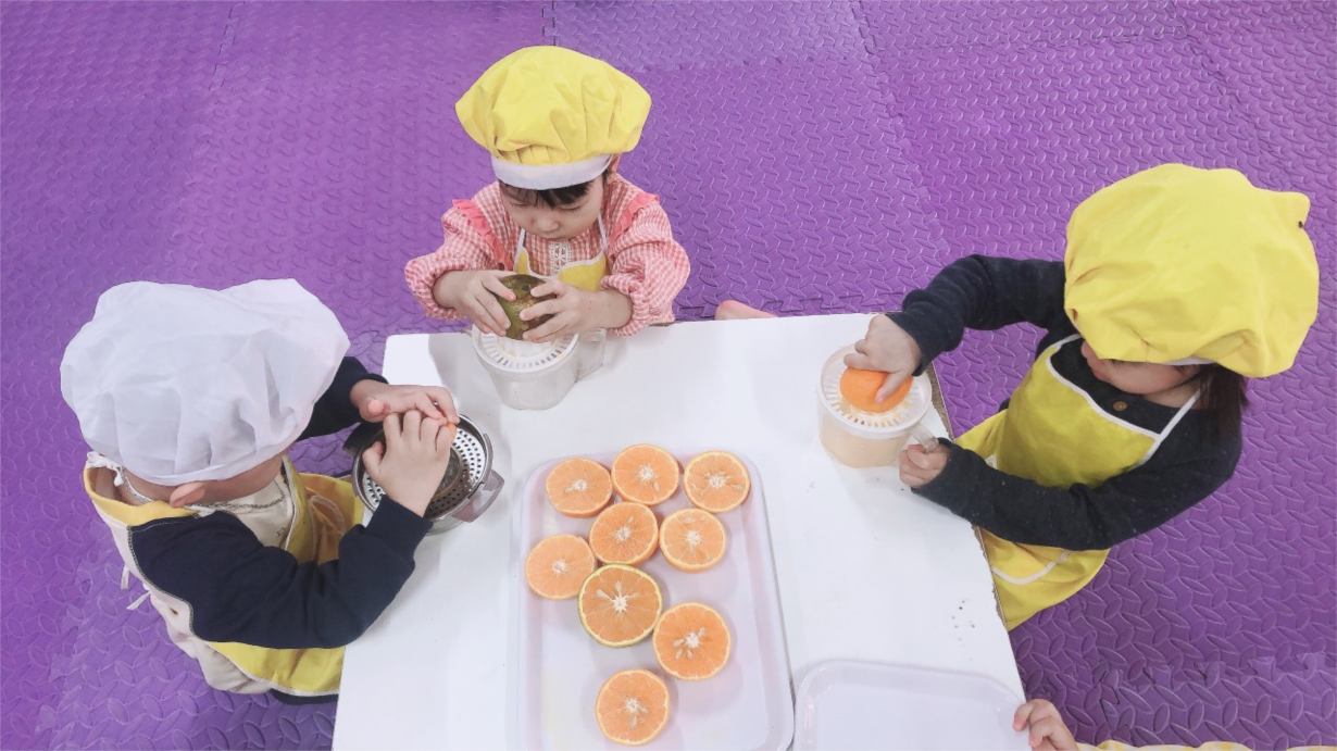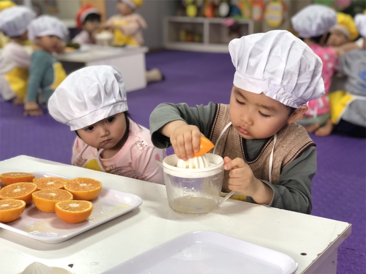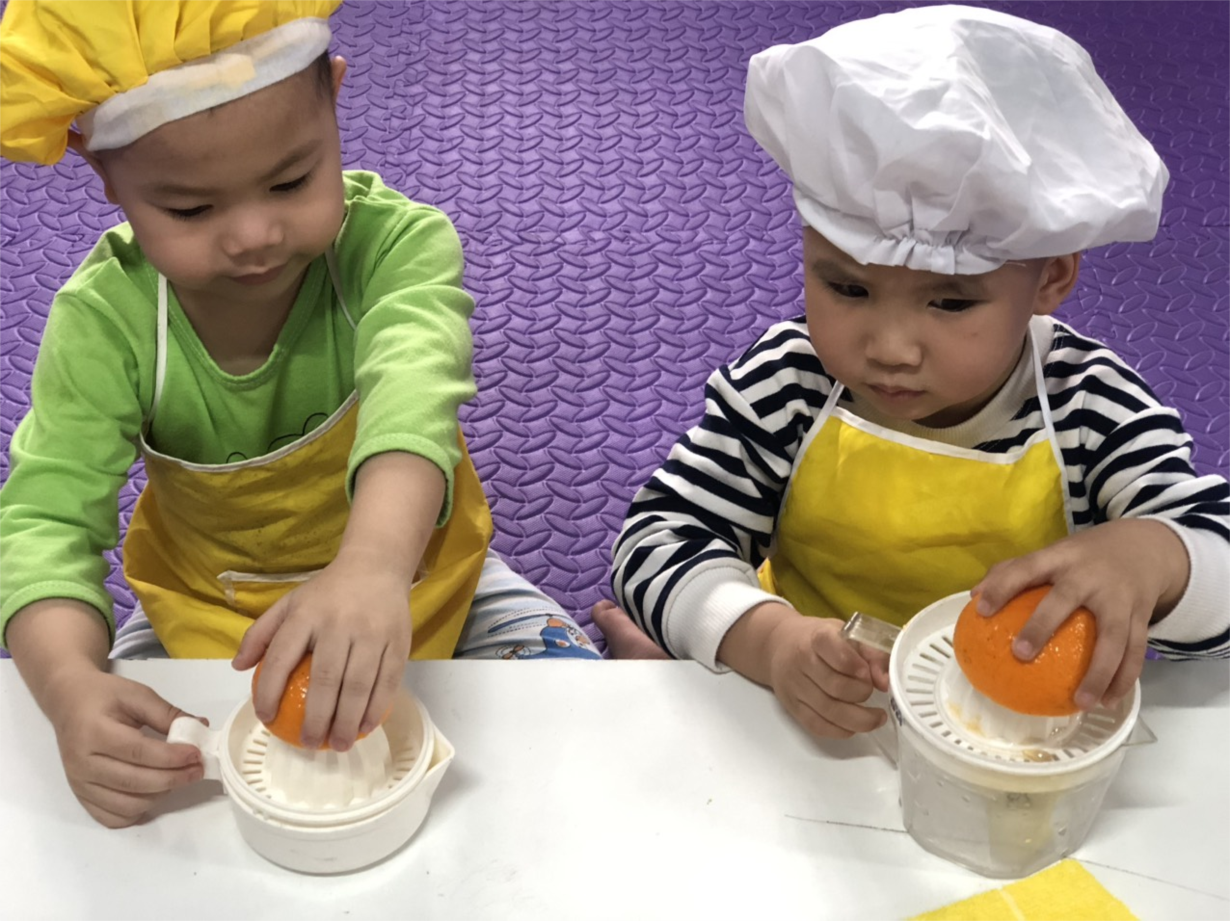 Các bé lớp NTD3 thực hành vắt nước cam