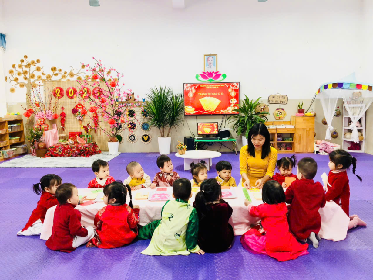 Các con lớp NTD3 trang trí bao lì xì