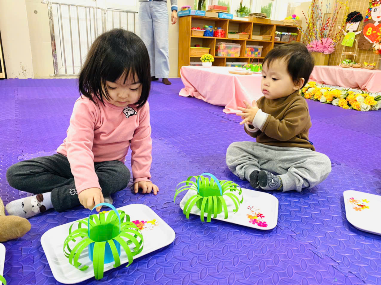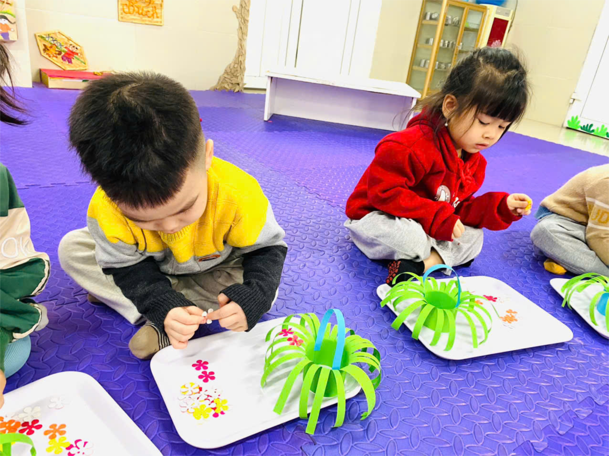 Các con lớp NTD3 làm giỏ hoa tặng mẹ nhân ngày 8/3