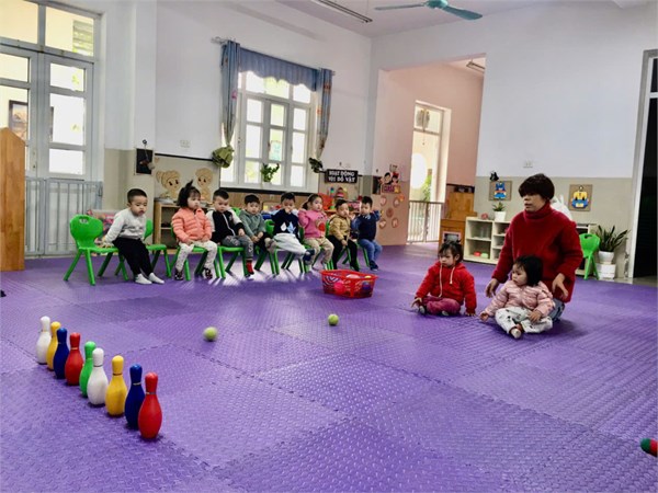 Tập ảnh : Những hình ảnh của các bé lớp NTD4 tham gia trò chơi Ném bolling