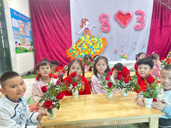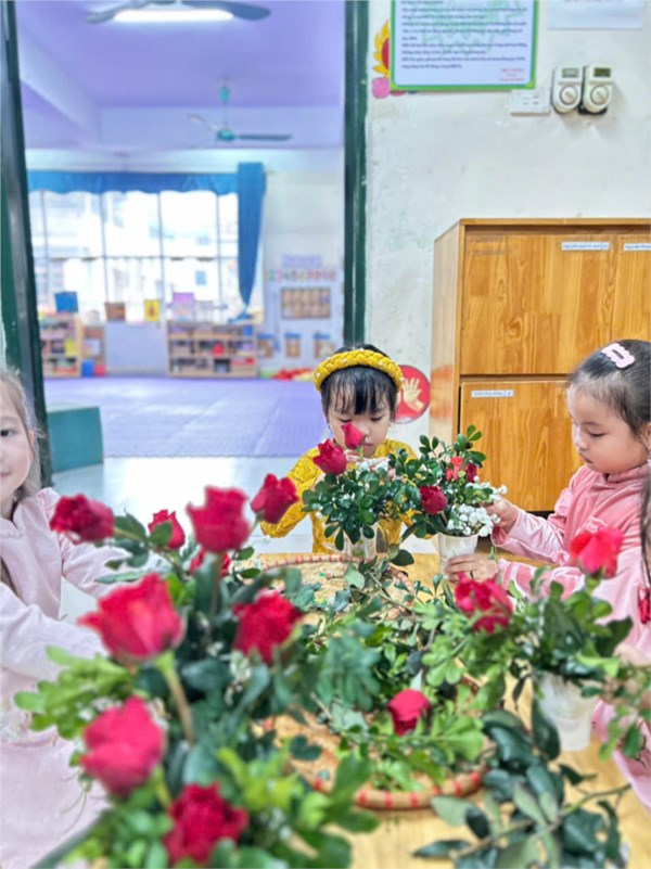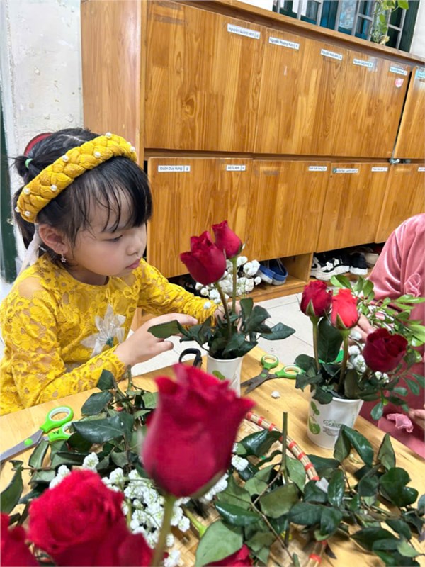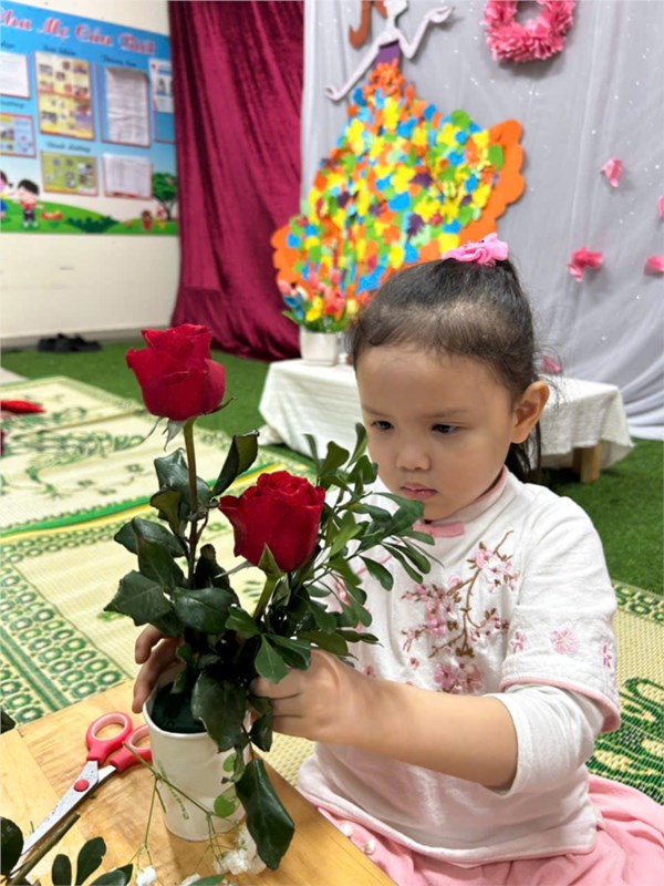 Tập ảnh : Tháng 3: Một số hình ảnh hoạt động cắm hoa tặng mẹ nhân ngày 8/3 của các bé lớp MGL A1