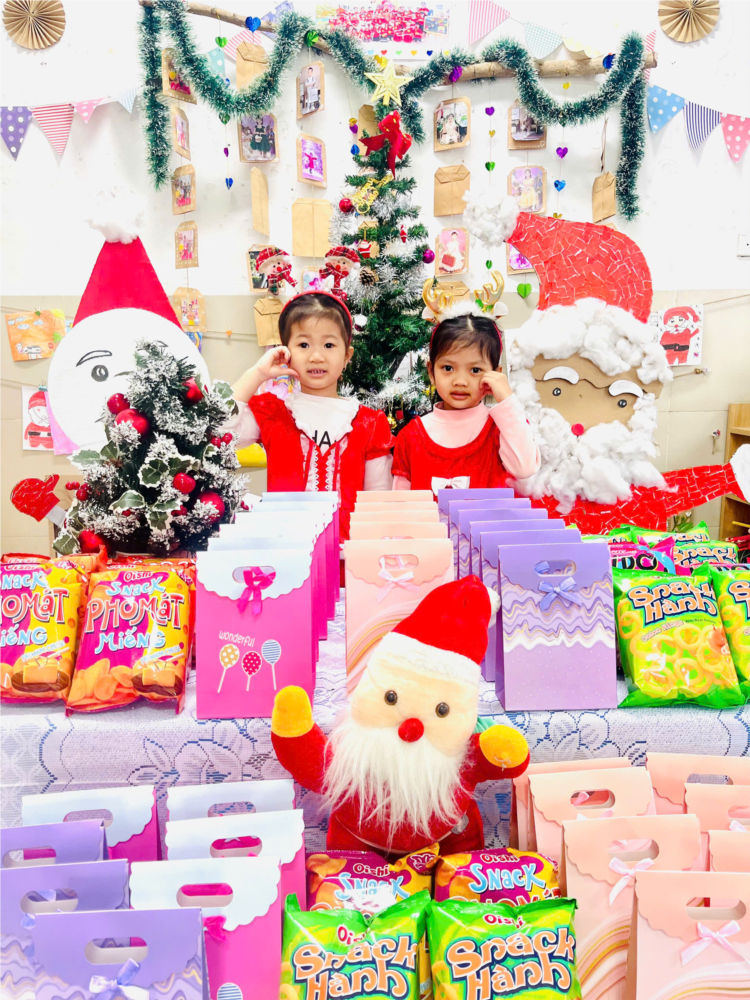 Khép lại ngày hội, các bạn nhỏ cùng nhau liên hoan bánh kẹo, quây quần bên bạn bè, chia sẻ niềm vui và tiếng cười trong không gian tràn đầy yêu thương. Ngày Noel không chỉ mang đến niềm vui mà còn giúp các con học được cách gắn kết, sẻ chia và lưu giữ những kỷ niệm đẹp dưới mái trường mầm non thân yêu.