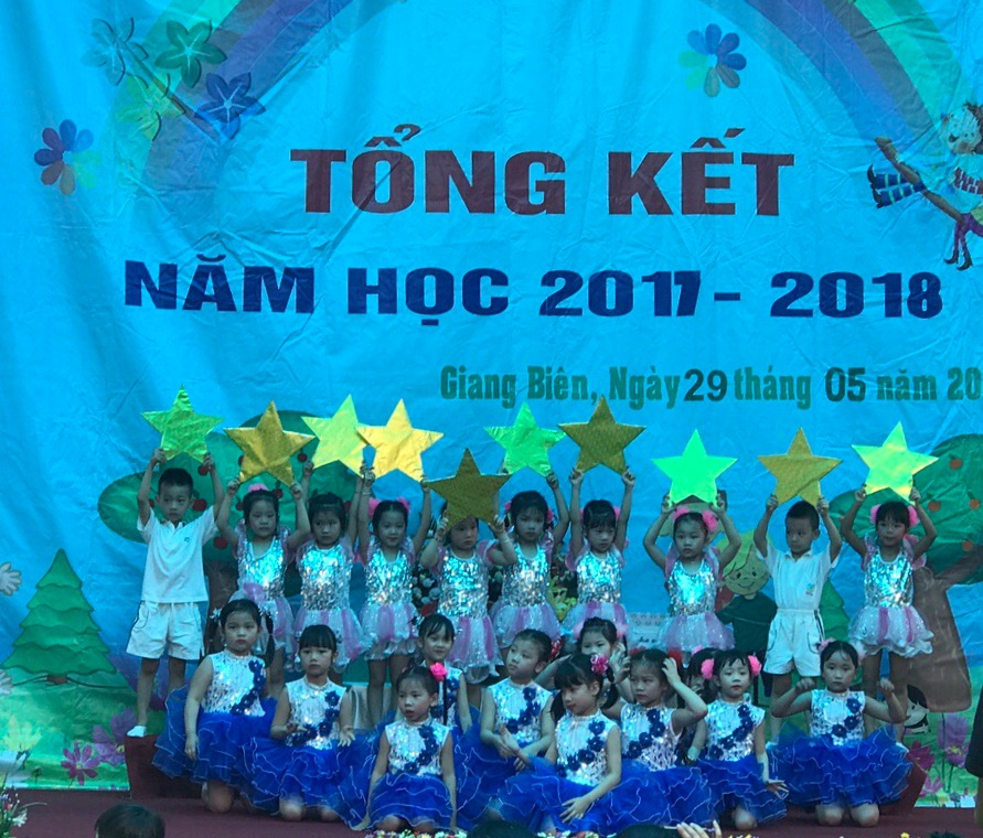 Sáng ngày 29, 30/5/2018 trường mầm non Giang Biên tổ chức tổng kết năm học 2017- 2018 tại hai khu trường. Buổi tổng kết được diễn ra trong không khí vui tươi, náo nhiệt của cô và trò trường mầm non Giang Biên với những kết quả đáng tự hào qua bài phát biểu của đồng chí Hoàng Thị Phương- Phó hiệu trưởng nhà trường. Ngày tổng kết năm nay được các bậc phụ huynh đánh giá cao về các tiết mục văn nghệ vô cùng đặc sắc và mới lạ bởi những màn trình diễn sôi động, kĩ năng múa điêu luyện của các bé khối mẫu giáo lớn của trường mầm .Buổi tổng kết đã để lại ấn tượng sâu sắc và nhiều tình cảm lưu luyến của các bé khối mẫu giáo lớn khi phải chia tay ngôi trường Giang Biên thân yêu